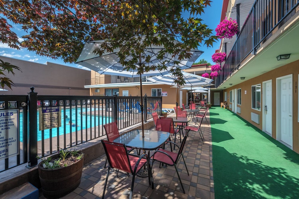 When you stay at Sahara Courtyard Inn Penticton in Penticton, you'll be near the beach, within a 15-minute walk of Okanagan Lake and South Okanagan Events Centre. This motel is 0.6 mi (0.9 km) from Go Karts and 0.6 mi (0.9 km) from Penticton Trade and Convention Centre. Make yourself at home in one of the 57 air-conditioned rooms featuring microwaves. Complimentary wireless internet access is available to keep you connected. Bathrooms with shower/tub combinations feature deep soaking bathtubs and complimentary toiletries. Conveniences include coffee/tea makers and irons/ironing boards, as well as phones with free local calls. Distances are displayed to the nearest 0.1 mile and kilometer.