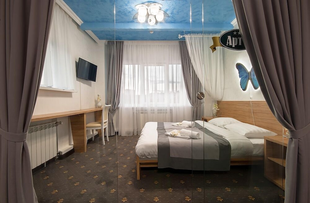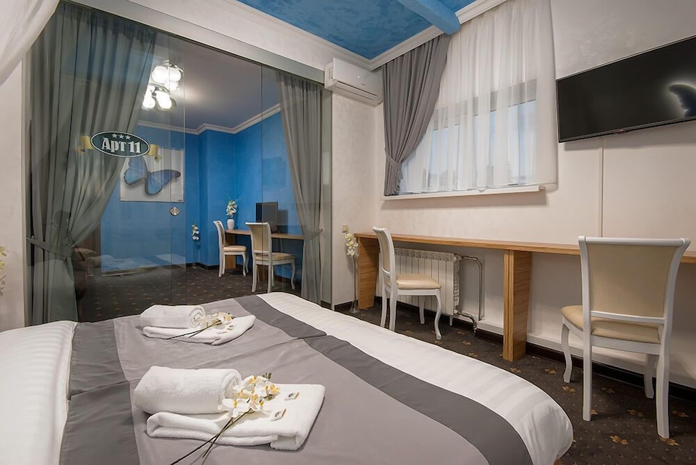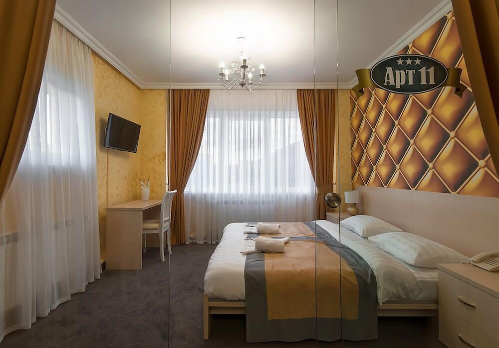 With a stay at Art 11 in Nizhny Novgorod (Nizhegorodskiy rayon), you'll be within a 10-minute drive of Nizhny Novgorod Volga Aerial Tramway and Volgageologiya Geological Museum. This hotel is 3.2 mi (5.2 km) from Lesopark Shchelokovskiy Khutor and 3.9 mi (6.3 km) from Upper Volga Embankment. Make yourself at home in one of the 14 air-conditioned rooms featuring refrigerators and minibars. Complimentary wireless internet access keeps you connected, and digital programming is available for your entertainment. Private bathrooms with bathtubs or showers feature complimentary toiletries and hair dryers. Conveniences include safes and desks, and housekeeping is provided daily. Distances are displayed to the nearest 0.1 mile and kilometer.