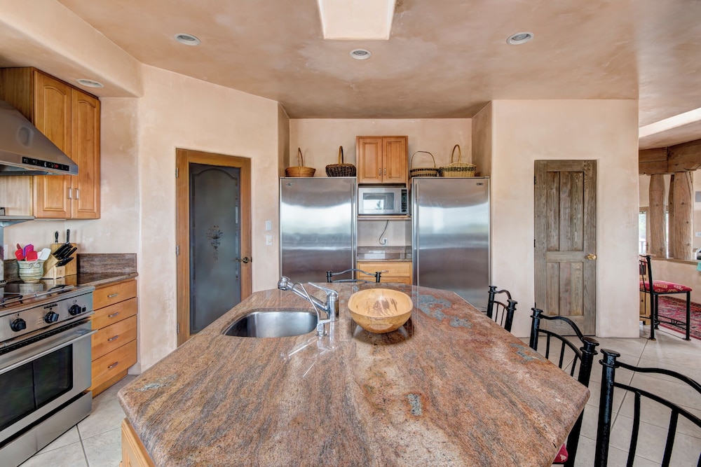 Located in Santa Fe (South Capitol), this vacation home is within a 15-minute walk of Loretto Chapel and Santa Fe Plaza. This vacation home is 0.5 mi (0.8 km) from New Mexico State Capitol and 0.5 mi (0.9 km) from Santa Fe Farmers Market. Treat yourself to a stay in this individually decorated vacation home, which features a fireplace. There's a private balcony or patio. A kitchen is outfitted with a refrigerator, an oven, and a stovetop. Cable television is provided for your entertainment. Distances are displayed to the nearest 0.1 mile and kilometer.
