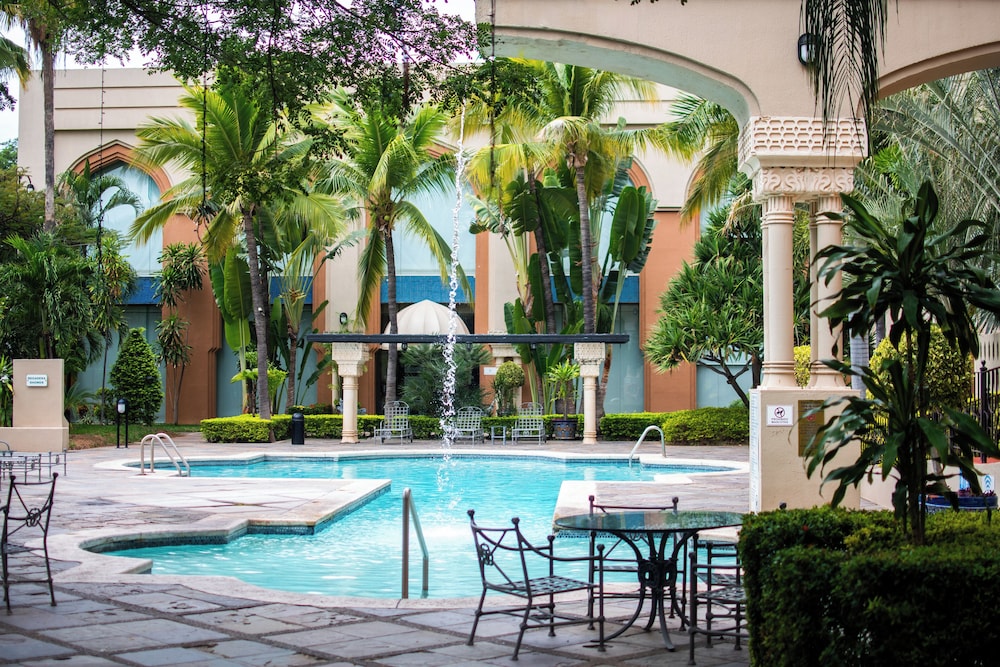 Featured amenities include complimentary wired internet access, a 24-hour business center, and express check-out. Event facilities at this hotel consist of a conference center and meeting rooms. Free self parking is available onsite. Enjoy recreational amenities such as an outdoor pool and a fitness center. Additional amenities at this hotel include complimentary wireless internet access, concierge services, and babysitting (surcharge). Getting to nearby attractions is a breeze with the area shuttle (surcharge). Stop by the hotel's restaurant, Terrraza, for lunch, dinner, or brunch. Dining is also available at the coffee shop/cafe, and 24-hour room service is provided. Wrap up your day with a drink at the bar/lounge. Buffet breakfasts are available daily from 6 AM to noon for a fee.- Fee for buffet breakfast: approximately USD 18 per person