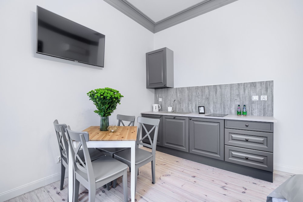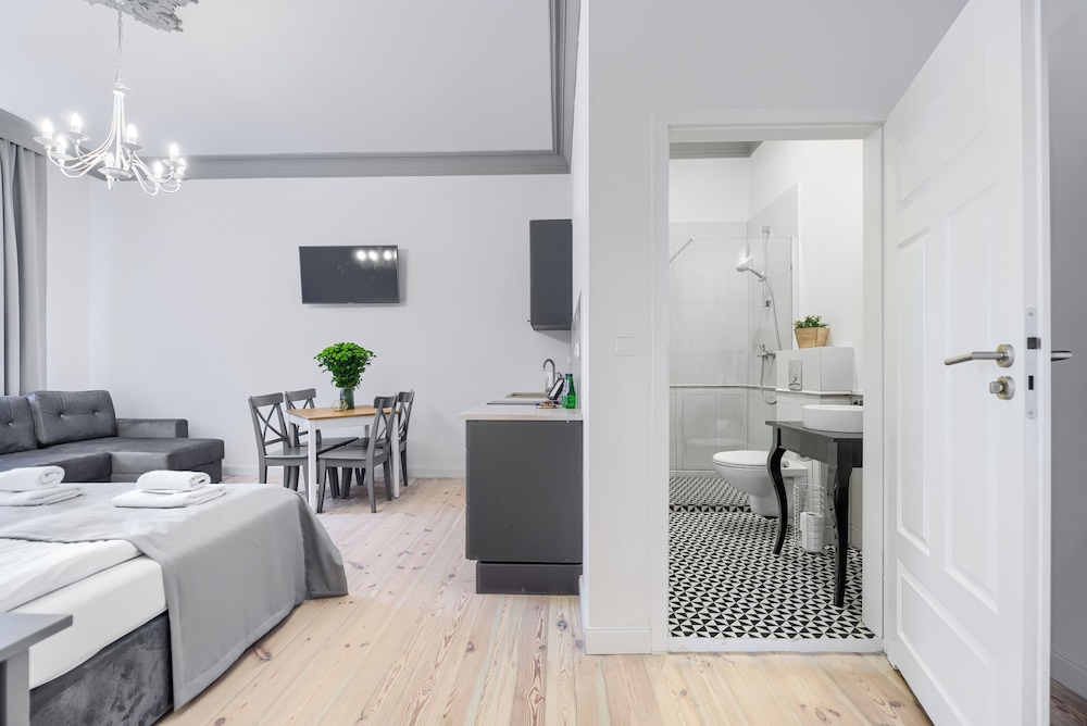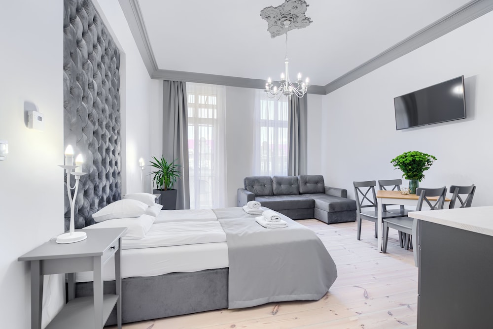 With a stay at Aparthotel 1899 by Platinum in Szczecin (Centrum), you'll be within a 5-minute drive of Galaxy Shopping Centre and Kana Theatre. This aparthotel is 1.2 mi (2 km) from Pomeranian Dukes' Castle and 1.3 mi (2.2 km) from Tower of Seven Coats. Make yourself at home in one of the 13 air-conditioned rooms featuring kitchenettes with refrigerators and stovetops. 32-inch LED televisions with cable programming provide entertainment, while complimentary wireless internet access keeps you connected. Conveniences include electric kettles and free tea bags/instant coffee. Distances are displayed to the nearest 0.1 mile and kilometer.