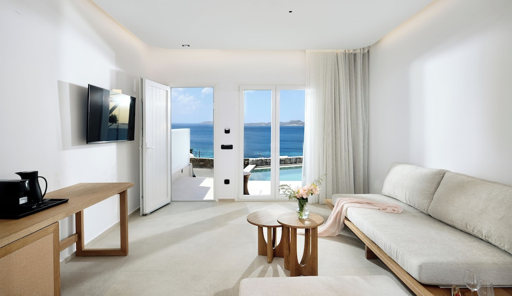 When you stay at Etere Luxury Suites in Mykonos, you'll be near the beach, a 5-minute drive from Windmills of Mykonos and 6 minutes from Mykonos Old Port. This bed & breakfast is 4.6 mi (7.5 km) from Mykonos New Port and 4.7 mi (7.6 km) from Paradise Beach. Make yourself at home in one of the 5 guestrooms featuring espresso makers. Rooms have private furnished balconies. Complimentary wireless internet access keeps you connected, and satellite programming is available for your entertainment. Bathrooms have hair dryers and slippers. Distances are displayed to the nearest 0.1 mile and kilometer.