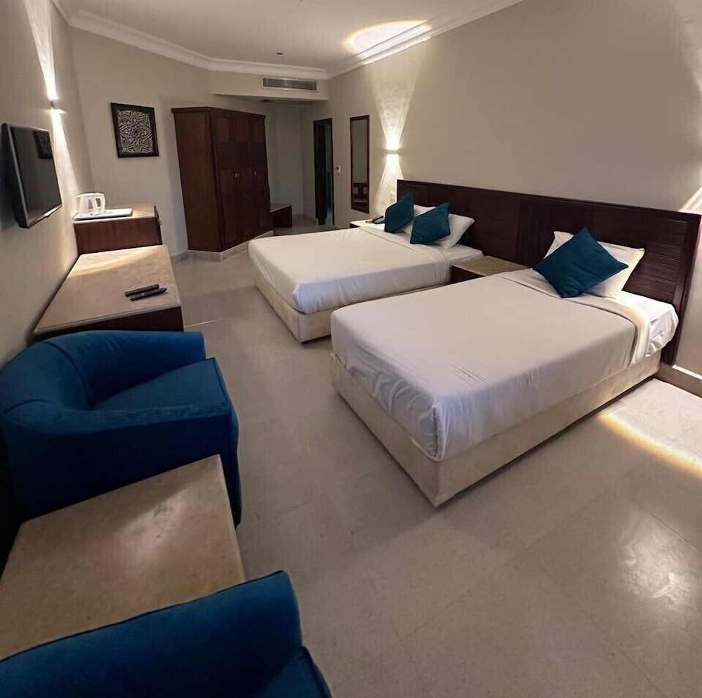 Located in Ataqah, Vai by Romance Hotel & Aqua Park is within a 15-minute drive of Teda Fun Valley Amusement Park and Sokhna Golf Club. This family-friendly hotel is 8.7 mi (14 km) from Ein El Sokhna Port and 22.6 mi (36.3 km) from Porto Sokhna Beach. Make yourself at home in one of the 90 guestrooms. Conveniences include safes, housekeeping is provided daily, and irons/ironing boards can be requested. Distances are displayed to the nearest 0.1 mile and kilometer.