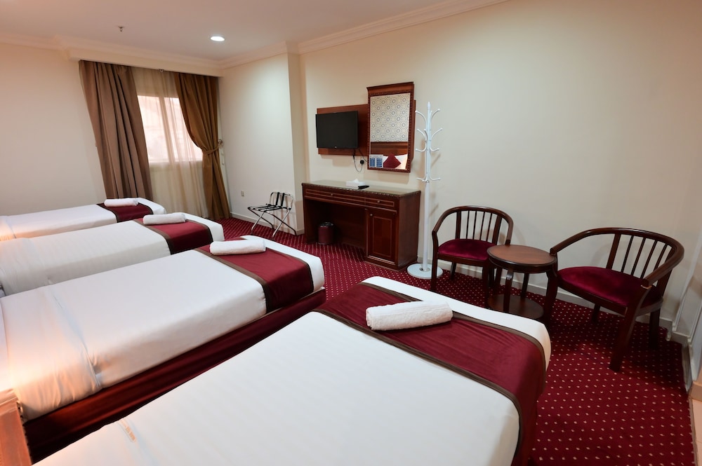 With a stay at Wefaq Al-Mashaer Hotel, you'll be centrally located in Makkah, within a 10-minute drive of Great Mosque of Makkah and Kaaba. This hotel is 4.8 mi (7.7 km) from The Clock Towers and 1.1 mi (1.8 km) from Faqih Mosque. Make yourself at home in one of the 310 guestrooms. Digital television is provided for your entertainment. Private bathrooms with showers feature rainfall showerheads and complimentary toiletries. Conveniences include safes and blackout drapes/curtains, and housekeeping is provided daily. Distances are displayed to the nearest 0.1 mile and kilometer.