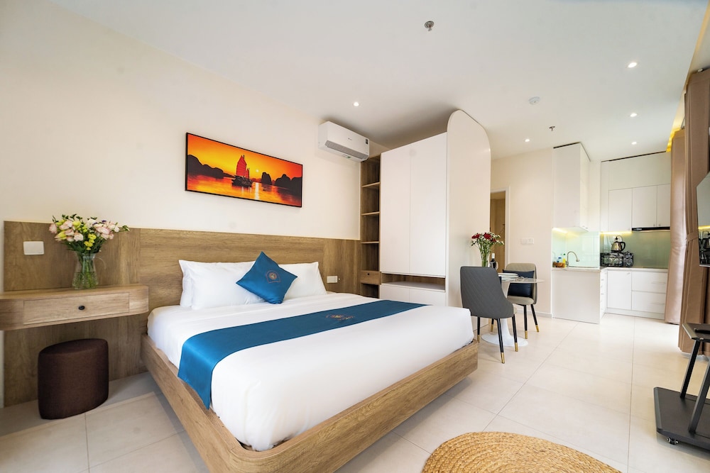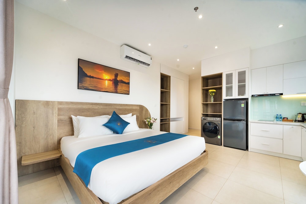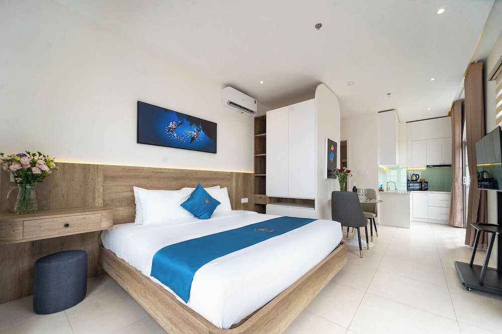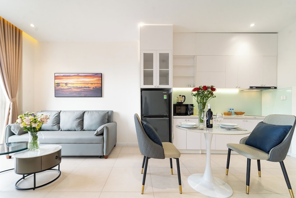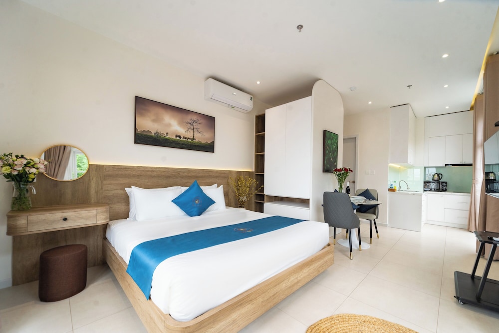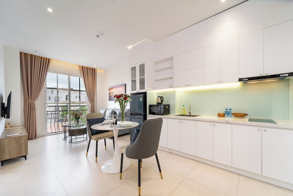 With a stay at Novus Sol Hotel & Apartment Sunset Town Phu Quoc in Phu Quoc, you'll be within a 15-minute drive of Sao Beach and An Thoi Cable Car Station. This aparthotel is 12.9 mi (20.7 km) from Phu Quoc Beach and 0.4 mi (0.6 km) from Kiss Bridge. Make yourself at home in one of the 19 guestrooms, featuring kitchenettes with refrigerators and stovetops. Rooms have private balconies or patios. Complimentary wireless internet access is available to keep you connected. Conveniences include separate sitting areas and all-in-one washer/dryers, and housekeeping is provided daily. Distances are displayed to the nearest 0.1 mile and kilometer.