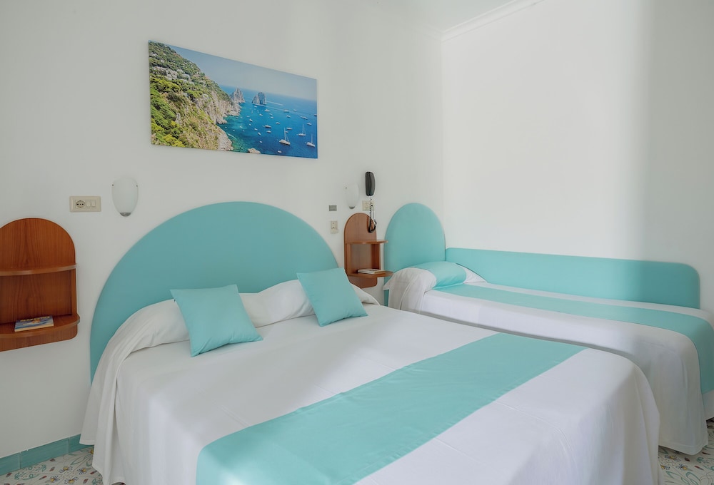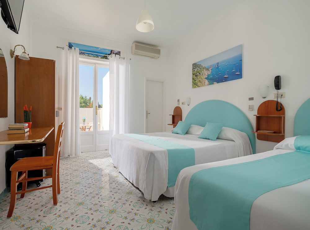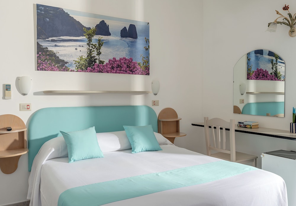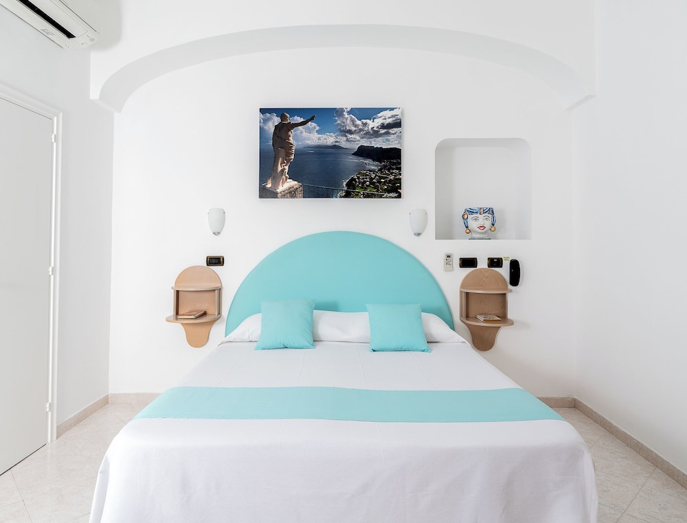 Hotel Carmencita is centrally located in Anacapri, a 5-minute walk from Chiesa di San Michele and 5 minutes by foot from Casa Rossa. This family-friendly hotel is 0.3 mi (0.5 km) from Monte Solaro Chairlift and 0.7 mi (1.1 km) from Villa San Michele. Stay in one of 20 guestrooms featuring LED televisions. Complimentary wireless internet access keeps you connected, and digital programming is available for your entertainment. Private bathrooms with showers feature rainfall showerheads and bidets. Conveniences include phones, as well as safes and desks. Distances are displayed to the nearest 0.1 mile and kilometer.