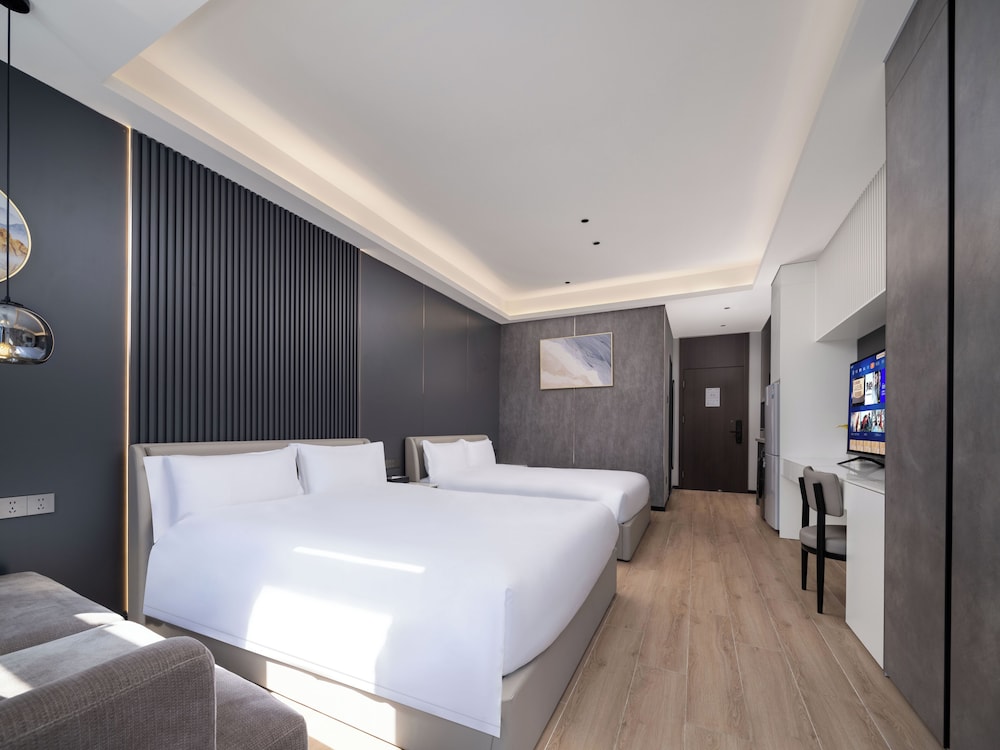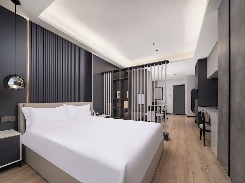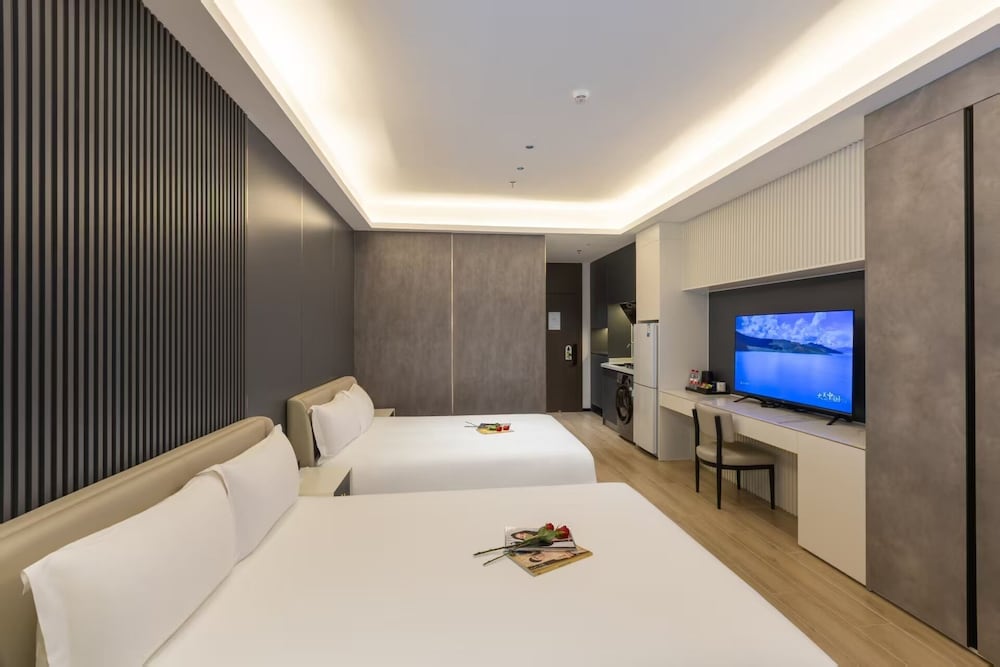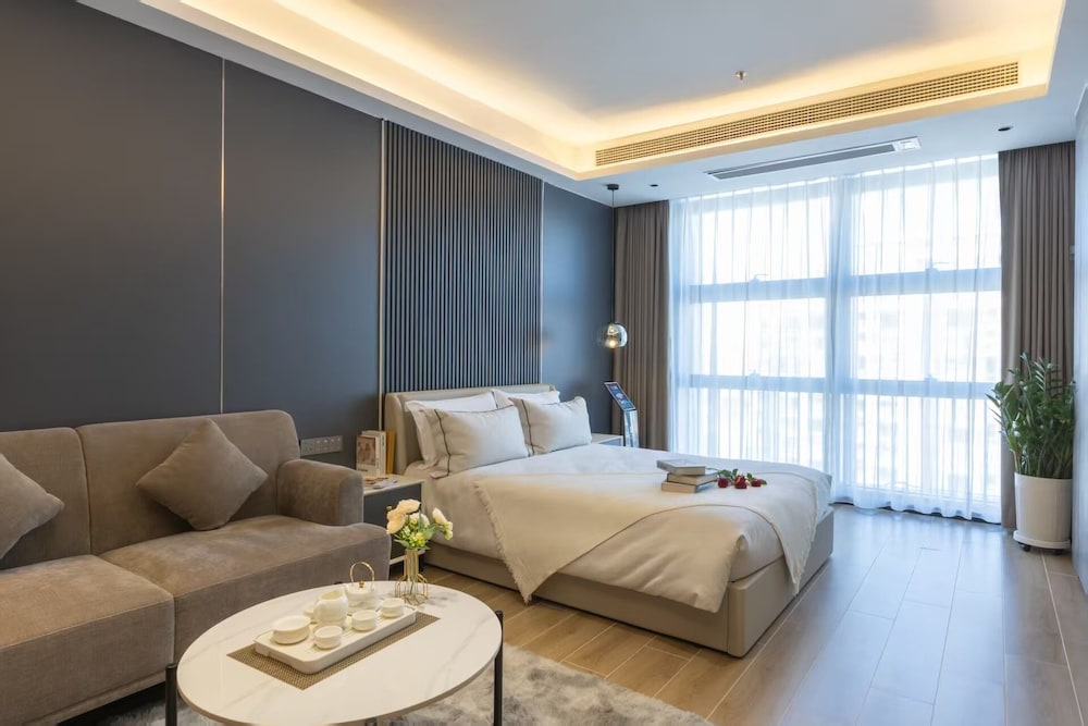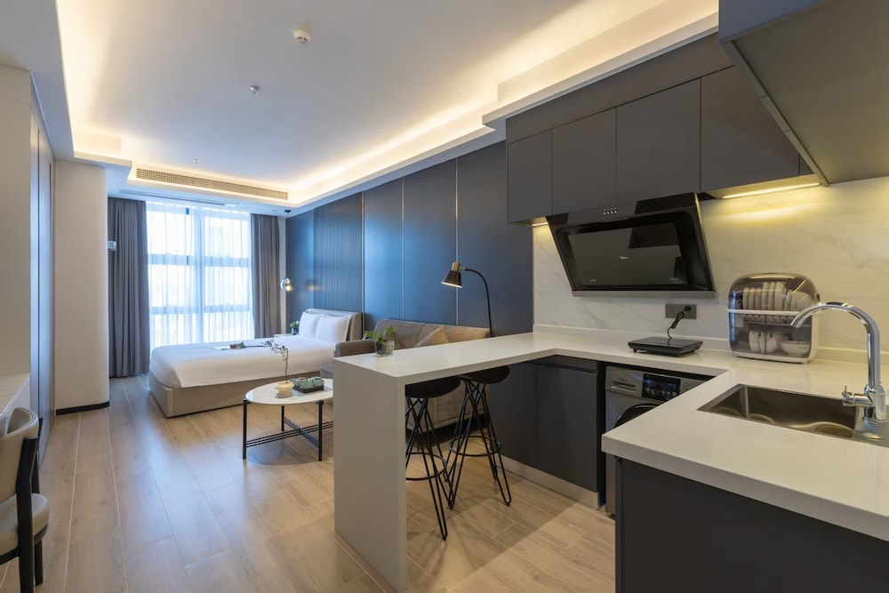 With a stay at XIANG JI EXECUTIVE APARTMENT in Shenzhen (Bao'an), you'll be within a 15-minute drive of Window of the World and Shenzhen Uniwalk Qianhai. This hotel is 1.9 mi (3 km) from Yifang Center and 2.1 mi (3.3 km) from OH Bay. Make yourself at home in one of the 307 air-conditioned rooms featuring kitchenettes with refrigerators and stovetops. Complimentary wireless internet access is available to keep you connected. Conveniences include phones, as well as desks and complimentary bottled water. Distances are displayed to the nearest 0.1 mile and kilometer.