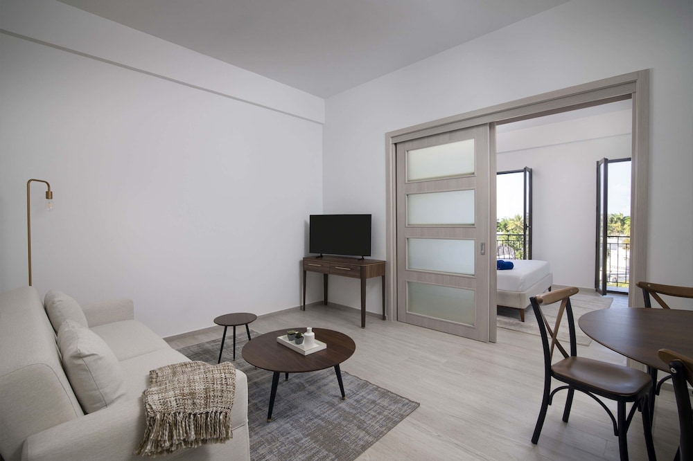 Located in Punta Cana (Bávaro), Reserva Real by Harper is steps from Cocotal Golf and Country Club and a 5-minute drive from Downtown Punta Cana. This aparthotel is 1.9 mi (3 km) from Bavaro Beach and 10.7 mi (17.3 km) from Arena Gorda Beach. Make yourself at home in one of the 192 air-conditioned rooms featuring kitchenettes with full-sized refrigerators/freezers and microwaves. 40-inch Smart televisions with cable programming provide entertainment, while complimentary wireless internet access keeps you connected. Conveniences include safes and desks, as well as phones with free local calls. Distances are displayed to the nearest 0.1 mile and kilometer.