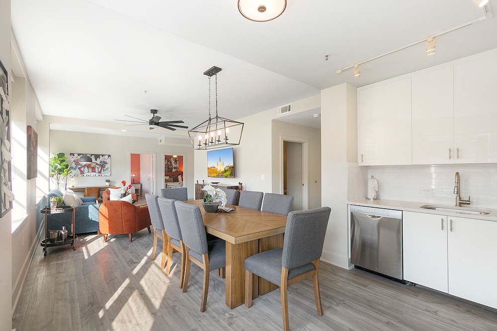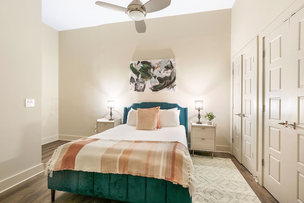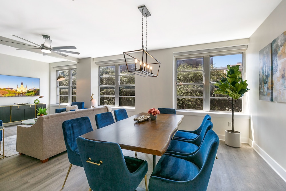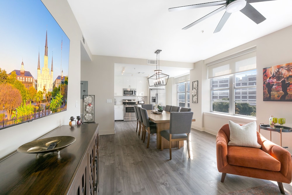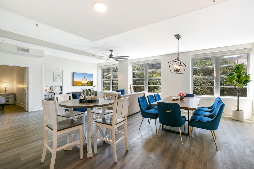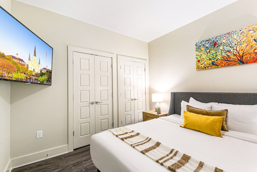 With a stay at Mardi Gras Suites NOLA's 4BR Elegance, you'll be centrally located in New Orleans, just a 3-minute walk from Canal Street and 7 minutes by foot from Bourbon Street. This hotel is 0.5 mi (0.8 km) from Caesars Superdome and 0.7 mi (1.2 km) from Caesars New Orleans Casino. Make yourself at home in one of the 100 individually decorated guestrooms, featuring kitchens with full-sized refrigerators/freezers and ovens. 65-inch flat-screen televisions with satellite programming provide entertainment, while complimentary wireless internet access keeps you connected. Conveniences include desks and separate sitting areas. Distances are displayed to the nearest 0.1 mile and kilometer.