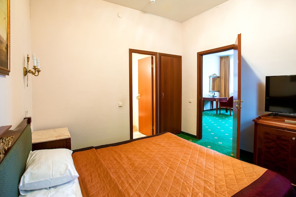 Featured amenities include a 24-hour front desk, multilingual staff, and luggage storage. Planning an event in St. Petersburg? This hotel has 818 square feet (76 square meters) of space consisting of conference space and 6 meeting rooms. A roundtrip airport shuttle is provided for a surcharge (available 24 hours), and free self parking is available onsite. Take advantage of recreation opportunities such as outdoor tennis courts, or other amenities including complimentary wireless internet access and concierge services. Additional features at this hotel include gift shops/newsstands and a reception hall. Spending a day of fun is easy with the complimentary theme park shuttle. Enjoy a meal at the restaurant or snacks in the coffee shop/cafe. The hotel also offers room service (during limited hours). Quench your thirst with your favorite drink at the bar/lounge. Buffet breakfasts are available daily from 7 AM to 10 AM for a fee.- Fee for buffet breakfast: approximately RUB 500 per person