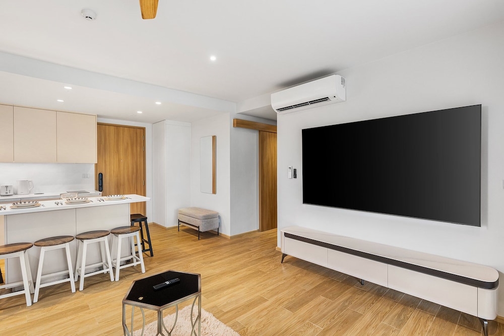When you stay at Beachside Residences by My Home Phuket in Choeng Thale, you'll be by the ocean, a 1-minute drive from Bang Tao Beach and 6 minutes from Surin Beach. This beach aparthotel is 4.1 mi (6.6 km) from Kamala Beach and 10.1 mi (16.2 km) from Patong Beach. Make yourself at home in one of the 5 air-conditioned rooms featuring kitchens with full-sized refrigerators/freezers and stovetops. 50-inch LCD televisions with cable programming provide entertainment, while complimentary wireless internet access keeps you connected. Conveniences include safes and microwaves, and housekeeping is provided on request. Distances are displayed to the nearest 0.1 mile and kilometer.