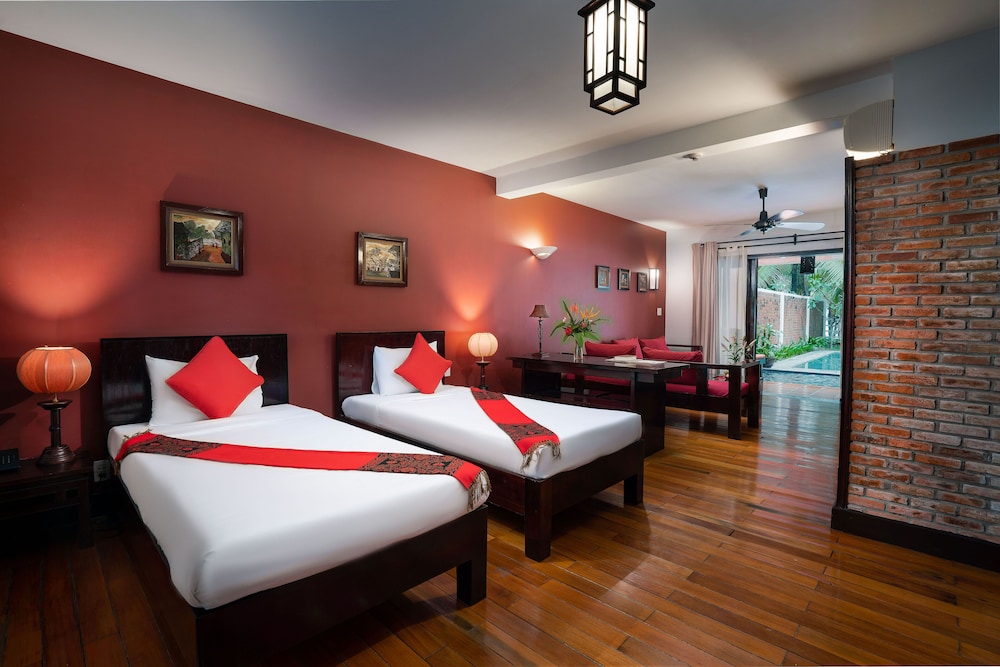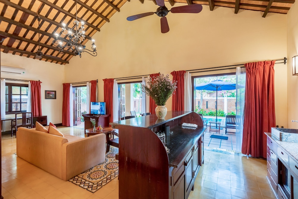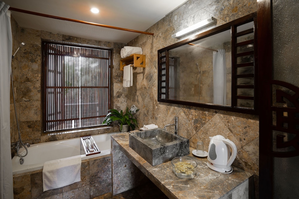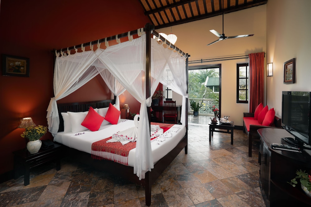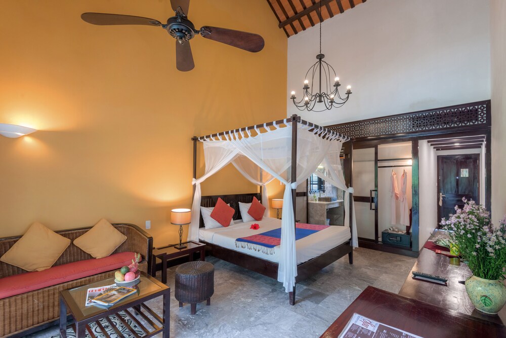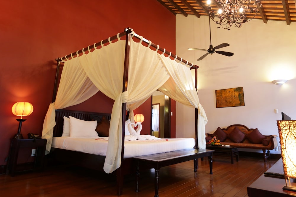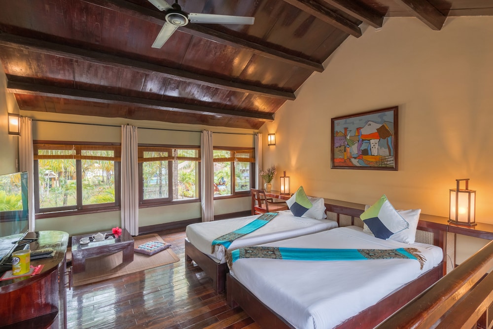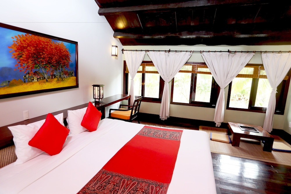 Located in Dien Ban, Le Belhamy Beach Resort & Spa, Hoi An is connected to the convention center, a 1-minute drive from Ha My Beach and 6 minutes from An Bang Beach. This upscale hotel is 4.4 mi (7.1 km) from Chua Cau and 4.5 mi (7.2 km) from Cam Pho Temple. Make yourself at home in one of the 131 individually decorated guestrooms, featuring minibars and LED televisions. Your room comes with a pillowtop bed. Rooms have private balconies or patios. Complimentary wireless internet access keeps you connected, and satellite programming is available for your entertainment. Bathrooms feature shower/tub combinations, complimentary toiletries, and hair dryers. Distances are displayed to the nearest 0.1 mile and kilometer.