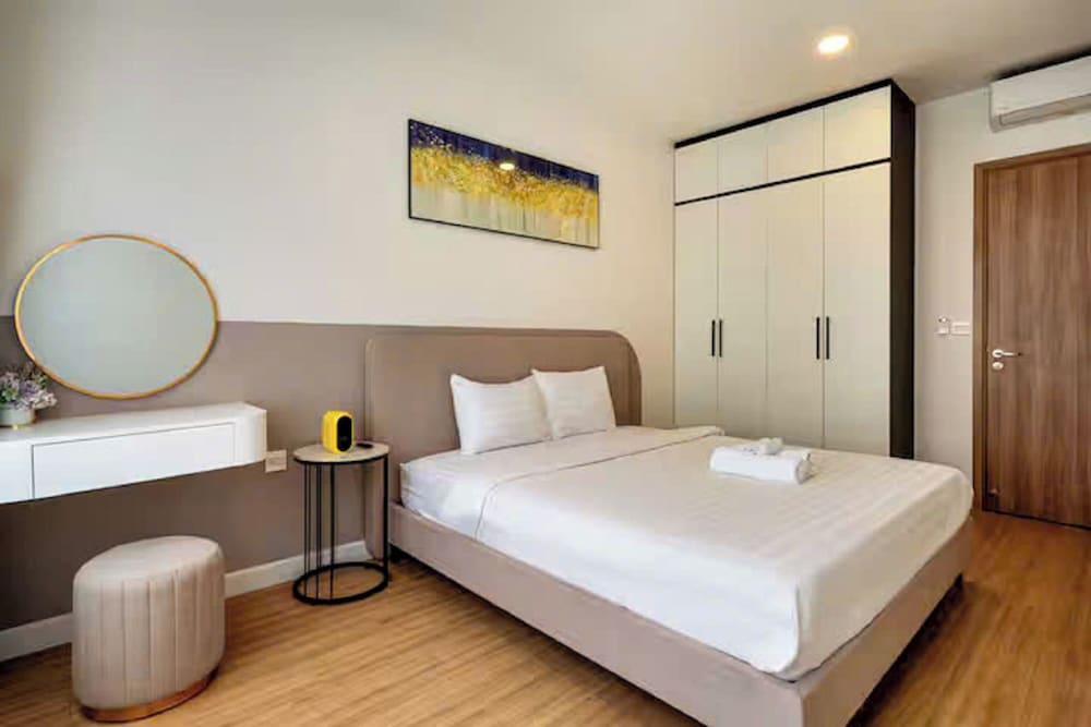 A stay at Vivian Boutique Soho Residence Luxury places you in the heart of Ho Chi Minh City, within a 10-minute walk of Bui Vien Walking Street and Pham Ngu Lao Street. This golf aparthotel is 1 mi (1.6 km) from Ben Thanh Market and 1.5 mi (2.4 km) from Dong Khoi Street. Treat yourself to a stay in one of the 50 individually decorated guestrooms, featuring fireplaces and Smart televisions. Your Select Comfort bed comes with down comforters and Egyptian cotton sheets. Rooms have private furnished balconies or patios. Kitchens are outfitted with full-sized refrigerators/freezers, ovens, and stovetops. Cable programming and smart speakers are provided for your entertainment, while complimentary wireless internet access keeps you connected. Distances are displayed to the nearest 0.1 mile and kilometer.