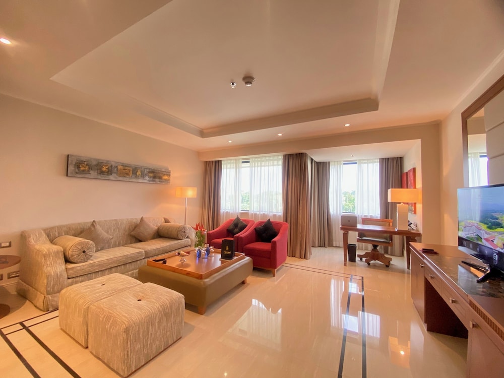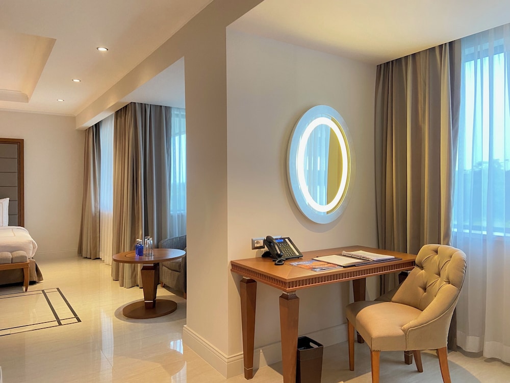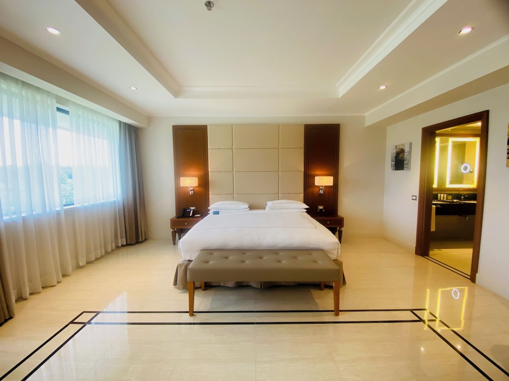 With a stay at Grand Hotel Djibloho in Djibloho, you'll be in the entertainment district, within a 10-minute walk of Djibloho Auditorium and Djibloho Conference Centre. Make yourself at home in one of the 452 air-conditioned rooms featuring fireplaces and private pools. Your pillowtop bed comes with down comforters and Egyptian cotton sheets. Rooms have private balconies or patios. Complimentary wireless internet access keeps you connected, and satellite programming is available for your entertainment. Distances are displayed to the nearest 0.1 mile and kilometer.