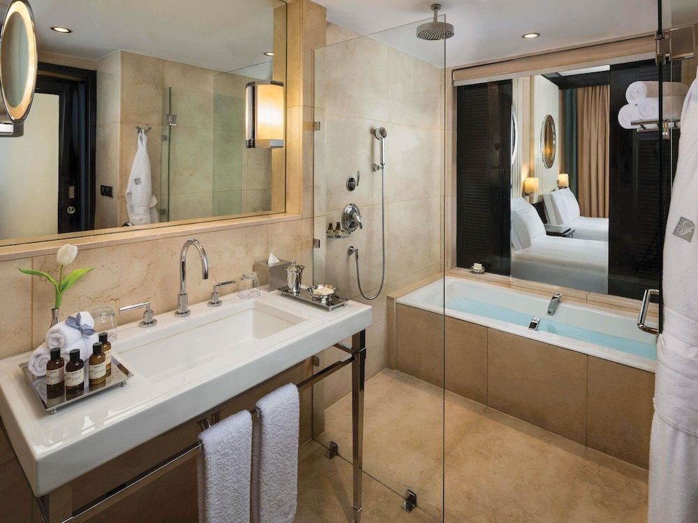 With a stay at Fairmont Nile City, Cairo, you'll be centrally located in Cairo, within a 5-minute drive of Tahrir Square and Egyptian Museum. This casino hotel is 11.9 mi (19.2 km) from Giza Pyramid Complex and 12.8 mi (20.7 km) from Grand Egyptian Museum. Make yourself at home in one of the 540 guestrooms featuring iPod docking stations and minibars. Your pillowtop bed comes with down comforters and premium bedding. Wired and wireless internet access is complimentary, while 40-inch LED televisions with digital programming provide entertainment. Bathrooms with separate bathtubs and showers feature deep soaking bathtubs and rainfall showerheads. Distances are displayed to the nearest 0.1 mile and kilometer.