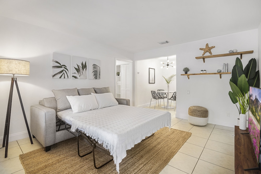 With a stay at Alani Bay Premium Condos in Fort Lauderdale (East Fort Lauderdale), you'll be a 3-minute drive from Las Olas Boulevard and 6 minutes from Las Olas Beach. This luxury condo is 2.4 mi (3.9 km) from Fort Lauderdale Beach and 5.9 mi (9.5 km) from Port Everglades. Make yourself at home in one of the 3 individually decorated guestrooms, featuring kitchens with full-sized refrigerators/freezers and ovens. Your room comes with a memory foam bed. 49-inch Smart televisions with digital programming provide entertainment, while complimentary wireless internet access keeps you connected. Conveniences include desks and separate sitting areas, and you can also request cribs/infant beds (complimentary). Distances are displayed to the nearest 0.1 mile and kilometer.
