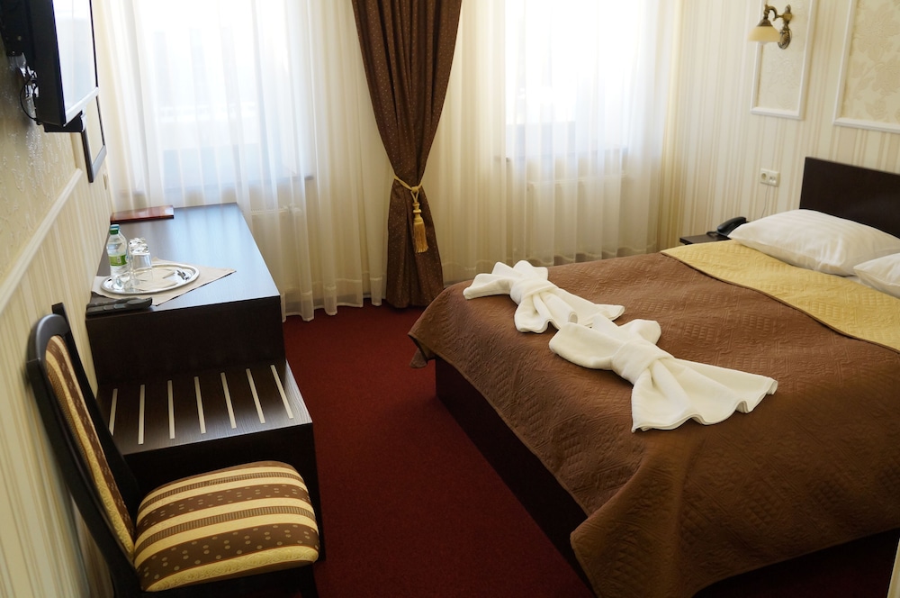 With a stay at BeSt Hotel and Restaurant complex in Dunaivtsi, you'll be 22.8 mi (36.8 km) from Kamenets-Podol'skiy Botanic Garden and 22.9 mi (36.9 km) from Holy Trinity Church. This hotel is 23.1 mi (37.2 km) from Ratusha and 23.1 mi (37.2 km) from Cathedral of SS Peter & Paul. Make yourself at home in one of the 20 air-conditioned rooms featuring refrigerators and LED televisions. Complimentary wired and wireless internet access keeps you connected, and satellite programming provides entertainment. Private bathrooms with showers feature complimentary toiletries and slippers. Conveniences include safes and desks, and housekeeping is provided daily. Distances are displayed to the nearest 0.1 mile and kilometer.