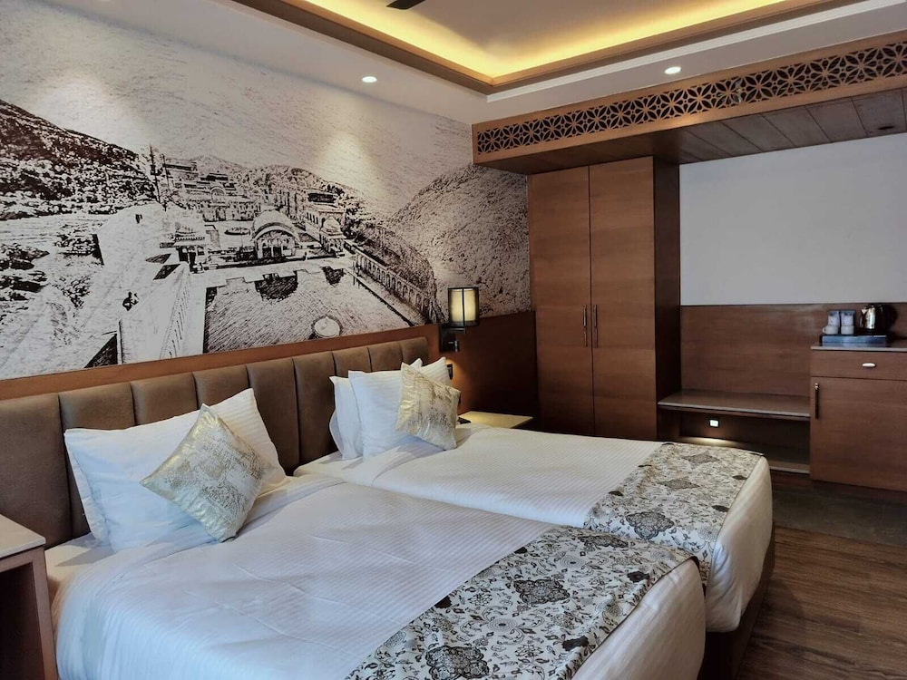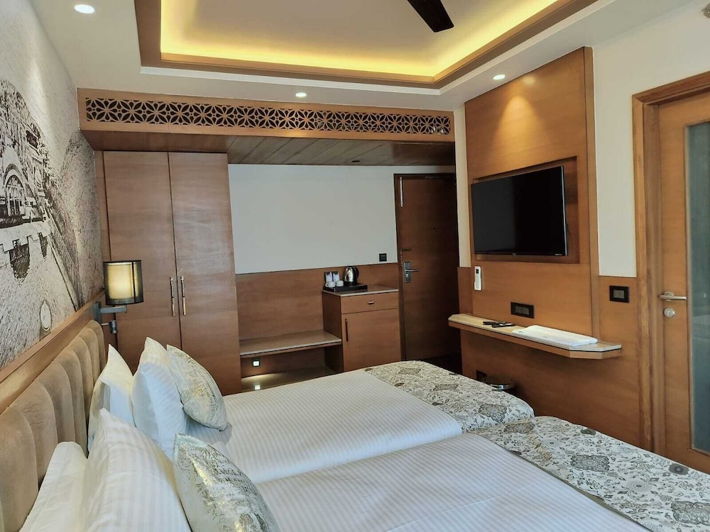With a stay at Royal Lakshmi Palace, you'll be centrally located in Jaipur, within a 10-minute drive of Hawa Mahal and Patrika Gate. This hotel is 0.9 mi (1.4 km) from World Trade Park and 0.9 mi (1.5 km) from Jawahar Circle. Make yourself at home in one of the 17 air-conditioned rooms featuring LED televisions. Your memory foam bed comes with premium bedding. Complimentary wireless internet access keeps you connected, and digital programming is available for your entertainment. Bathrooms feature showers with rainfall showerheads. Distances are displayed to the nearest 0.1 mile and kilometer.