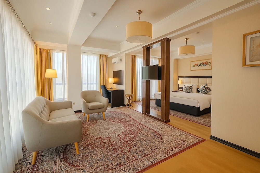 Located in Dushanbe, Atlas Hotel is within a 5-minute drive of Victory Park and Tajikistan National Museum. This spa hotel is 0.9 mi (1.5 km) from Bekhzod National Museum and 1.1 mi (1.7 km) from Bactria Cultural Centre. Make yourself at home in one of the 60 air-conditioned rooms featuring LED televisions. Complimentary wireless internet access is available to keep you connected. Private bathrooms have complimentary toiletries and bidets. Conveniences include safes and desks, as well as phones with free local calls. Distances are displayed to the nearest 0.1 mile and kilometer.