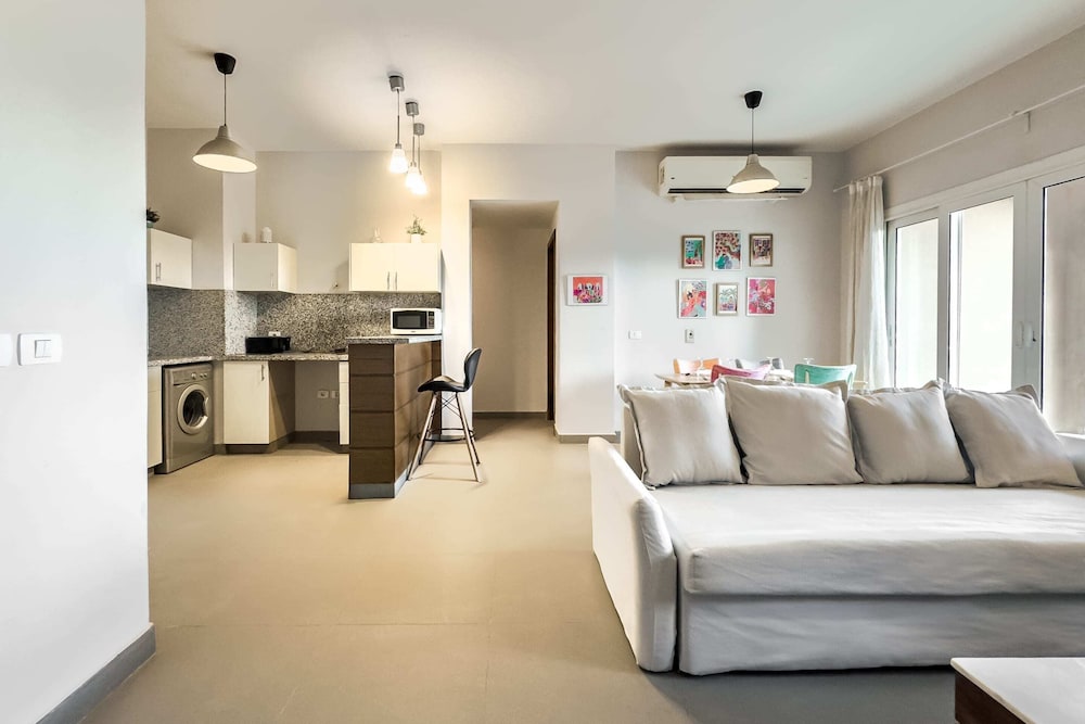 When you stay at this apartment in El Gouna, you'll be in the entertainment district, within a 15-minute drive of Red Sea and El Gouna Beach. This apartment is 19.4 mi (31.1 km) from Marina Hurghada and 30 mi (48.3 km) from Desert Rose Aqua Park. Make yourself comfortable in this air-conditioned apartment, featuring a kitchen with a refrigerator and an oven. A 55-inch Smart television is provided, with cable programming available. Conveniences include a microwave and an electric kettle. Distances are displayed to the nearest 0.1 mile and kilometer.