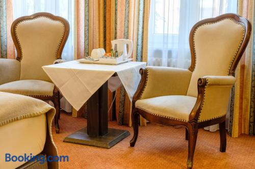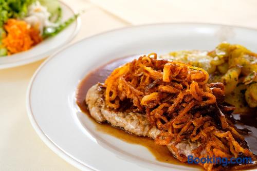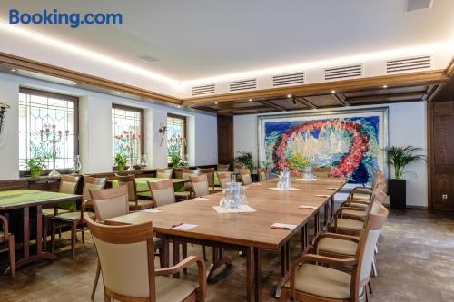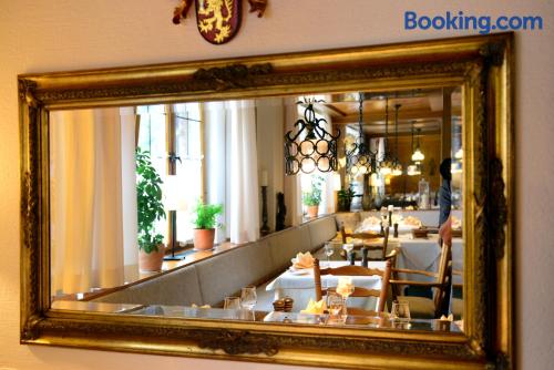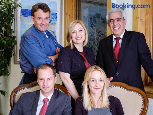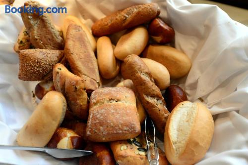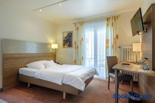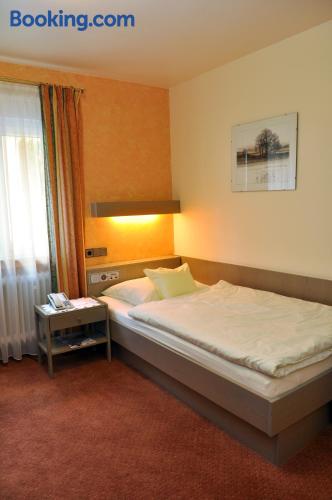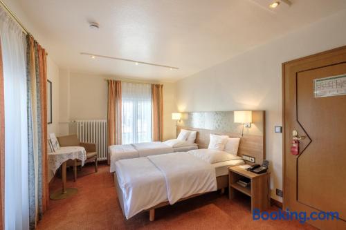 Located in the heart of Baden-Württemberg, this family-run 3-star hotel in Göppingen offers free breakfasts and a traditional restaurant, just 2297 feet from the main railway station. Hotel Hohenstaufen provides nonsmoking rooms with comfortable furniture, a TV with Sky channels, a private bathroom and modern amenities. Air conditioning is not available in the rooms. A rich breakfast buffet is served each morning at the Hotel Hohenstaufen. Delicious Swabian cuisine and a large selection of wines are served in the Hohenstaufen's restaurant or in the elegant conservatory. The cozy bar features a fireplace. The historic Burg Hohenstaufen castle ruins are only 3.7 mi away.