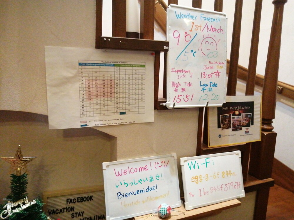 With a stay at Full House Miyajima in Hatsukaichi, you'll be within a 5-minute drive of Setonaikai National Park and JR Nishinihon Miyajima Ferry. This guesthouse is 2.5 mi (4 km) from Miyajima Ferry Terminal and 3.2 mi (5.1 km) from Itsukushima Shrine. Make yourself at home in one of the 3 guestrooms featuring microwaves. Prepare your meals in the shared/communal kitchen. Complimentary wireless internet access is available to keep you connected. Bathrooms have complimentary toiletries and bidets. Distances are displayed to the nearest 0.1 mile and kilometer.
