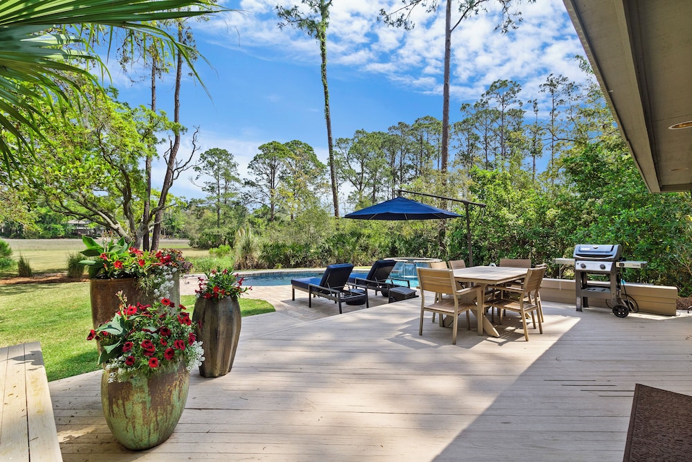 With a stay at this vacation home in Hilton Head Island (Sea Pines), you'll be within a 10-minute drive of Coligny Beach and South Beach. This golf vacation home is 9.4 mi (15.1 km) from Palmetto Dunes Club and 1.3 mi (2.1 km) from Calibogue Sound. Treat yourself to a stay in this individually decorated vacation home, which features a private pool. There's a private balcony or patio. A kitchen is outfitted with a refrigerator, an oven, and a stovetop. Complimentary wireless internet access keeps you connected, and cable programming is available for your entertainment. Distances are displayed to the nearest 0.1 mile and kilometer.