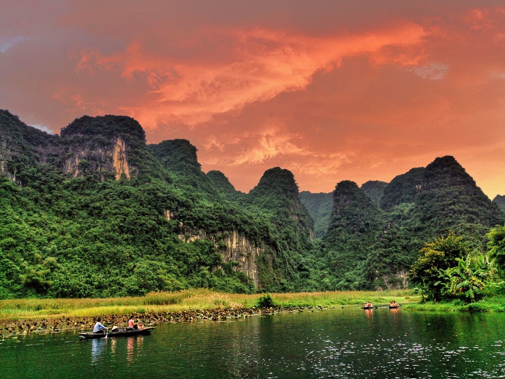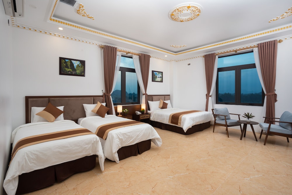 When you stay at Trang An International Hotel in Hoa Lu, you'll be in the mountains, a 1-minute drive from Trang An Scenic Landscape Complex and 6 minutes from Ninh Binh Walking Street. This family-friendly hotel is 2 mi (3.2 km) from Tuyệt Tình Cốc and 2.5 mi (4 km) from Hoa Lu Ancient Capital. Make yourself at home in one of the 40 air-conditioned rooms featuring minibars and Smart televisions. Your memory foam bed comes with down comforters. Complimentary wired and wireless internet access keeps you connected, and digital programming provides entertainment. Private bathrooms with showers feature complimentary toiletries and bidets. Distances are displayed to the nearest 0.1 mile and kilometer.