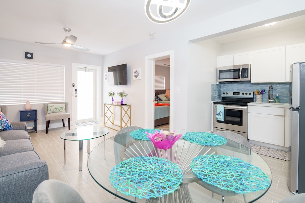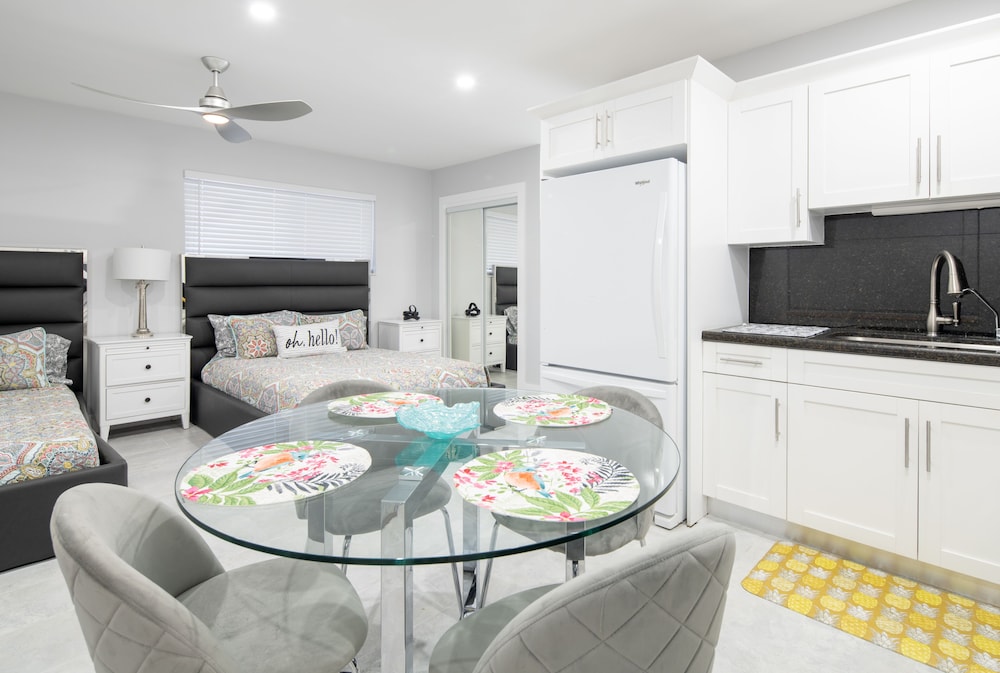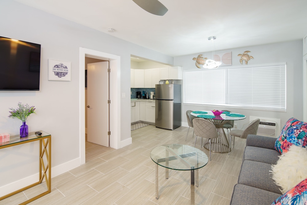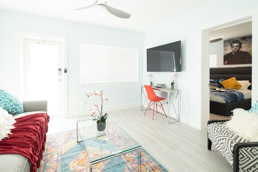 With a stay at The Surf Hollywood Beach in Hollywood (Hollywood Beach), you'll be a 1-minute drive from Hollywood Beach and 8 minutes from Dania Pointe. This beach hotel is 6.5 mi (10.5 km) from Aventura Mall and 7 mi (11.3 km) from Port Everglades. Make yourself at home in one of the 10 air-conditioned rooms featuring kitchens with full-sized refrigerators/freezers and ovens. Your pillowtop bed comes with premium bedding. Rooms have private furnished patios. 55-inch Smart televisions with digital programming provide entertainment, while complimentary wireless internet access keeps you connected. Distances are displayed to the nearest 0.1 mile and kilometer.