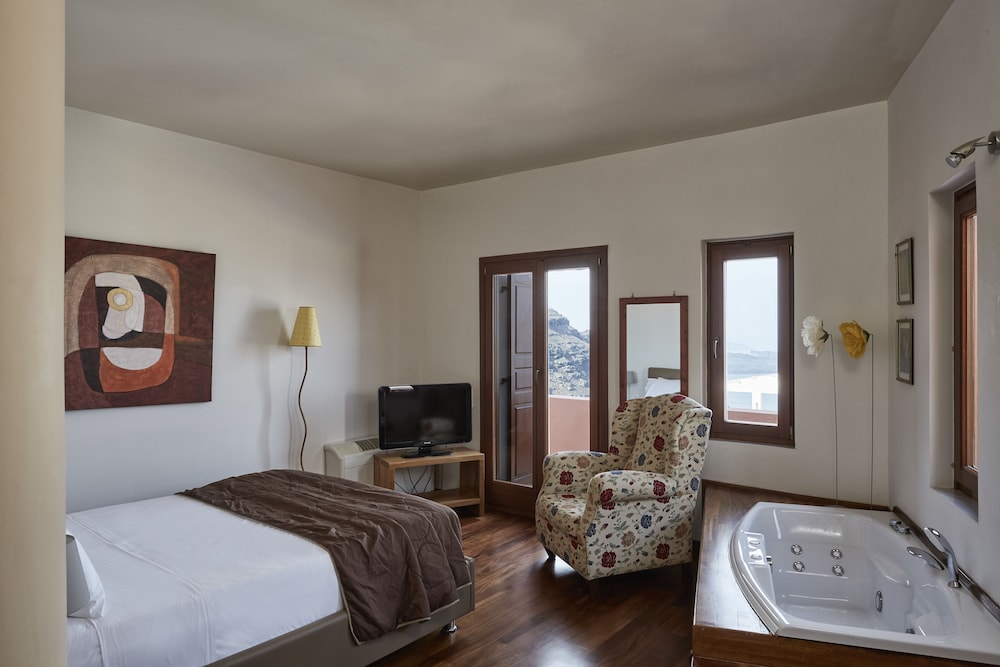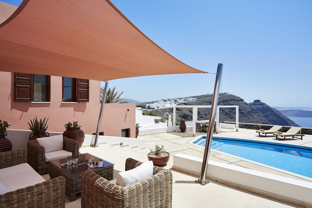 With a stay at this villa in Santorini, you'll be steps from Santorini Caldera and Aegean Islands. This 4.5-star villa is 7.9 mi (12.7 km) from Kamari Beach and 1.3 mi (2.1 km) from Skaros Rock. Make yourself comfortable in this villa, which features a private pool and a flat-screen TV. There's a private furnished balcony/patio. A kitchen is outfitted with a full-sized refrigerator/freezer, an oven, and a stovetop. Satellite programming and a DVD player are provided for your entertainment, while complimentary wireless Internet access keeps you connected. A private bathroom with a separate bathtub and shower features a jetted bathtub and complimentary toiletries. Distances are displayed to the nearest 0.1 mile and kilometer.