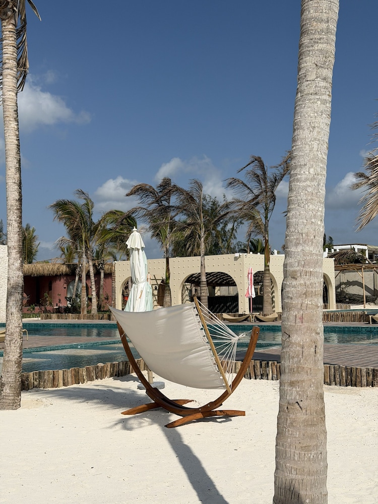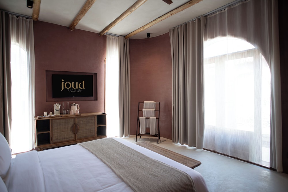 When you stay at Joud by the sea in Jambiani, you'll be on the beach, within a 15-minute drive of Jambiani Beach and Paje Beach. This beach hotel is 3.6 mi (5.7 km) from Kuza Cave and 4.6 mi (7.5 km) from Swahili Cave. Make yourself at home in one of the 32 guestrooms featuring minibars and LED televisions. Complimentary wireless internet access keeps you connected, and satellite programming is available for your entertainment. Private bathrooms with separate bathtubs and showers feature hair dryers and slippers. Conveniences include phones, as well as safes and desks. Distances are displayed to the nearest 0.1 mile and kilometer.