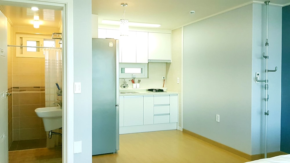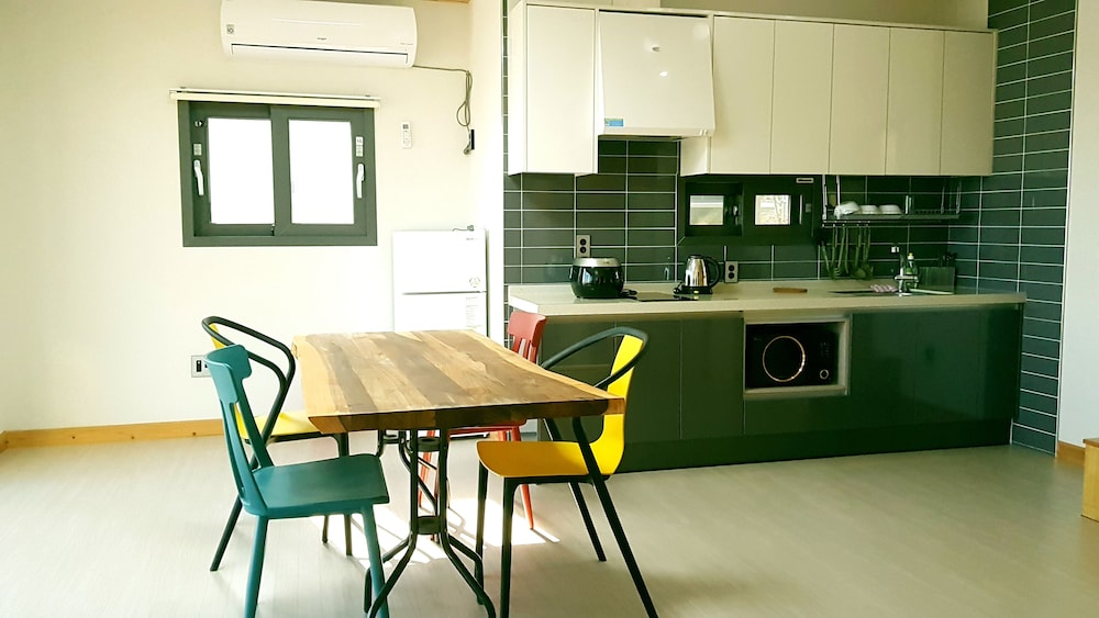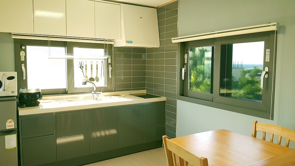 With a stay at Jeju Witch's Hill in Seogwipo (Jungmun), you'll be within a 15-minute drive of Sanbangsan Mountain and PLAY K-POP. This beach pension is 10 mi (16 km) from Jeju Shinhwa World and 12.1 mi (19.4 km) from Seogwipo Maeil Olle Market. Treat yourself to a stay in one of the 10 individually decorated guestrooms, featuring heated floors and Smart televisions. Rooms have private balconies. Kitchens are outfitted with full-sized refrigerators/freezers, stovetops, and microwaves. Complimentary wired and wireless internet access keeps you connected, and cable programming provides entertainment. Distances are displayed to the nearest 0.1 mile and kilometer.