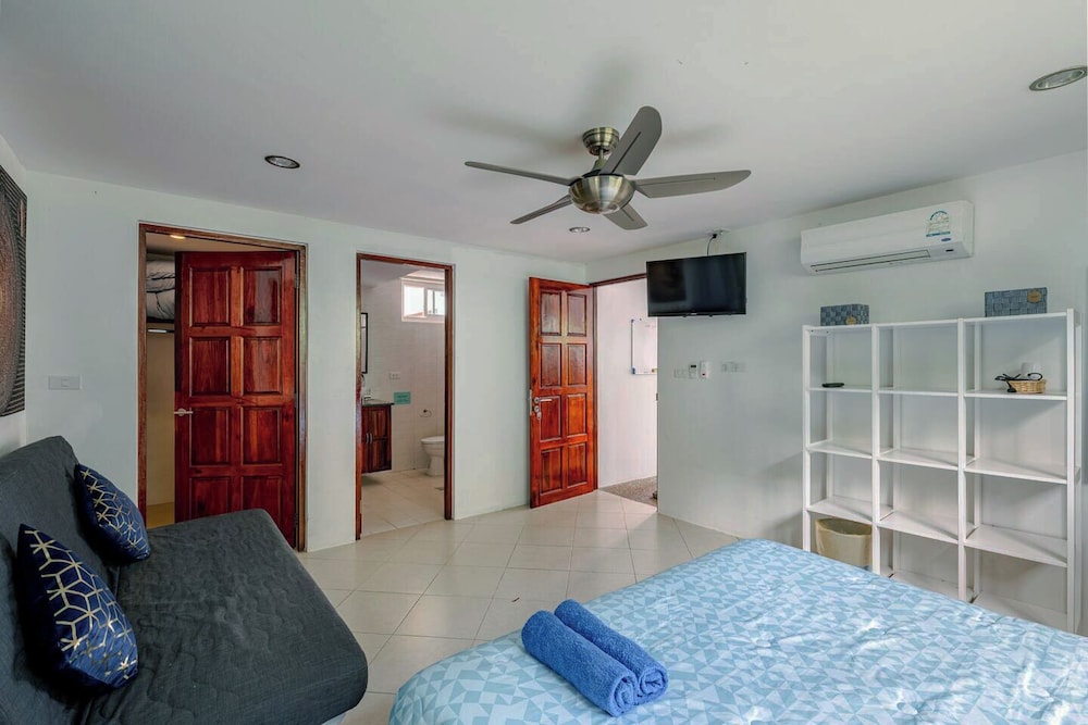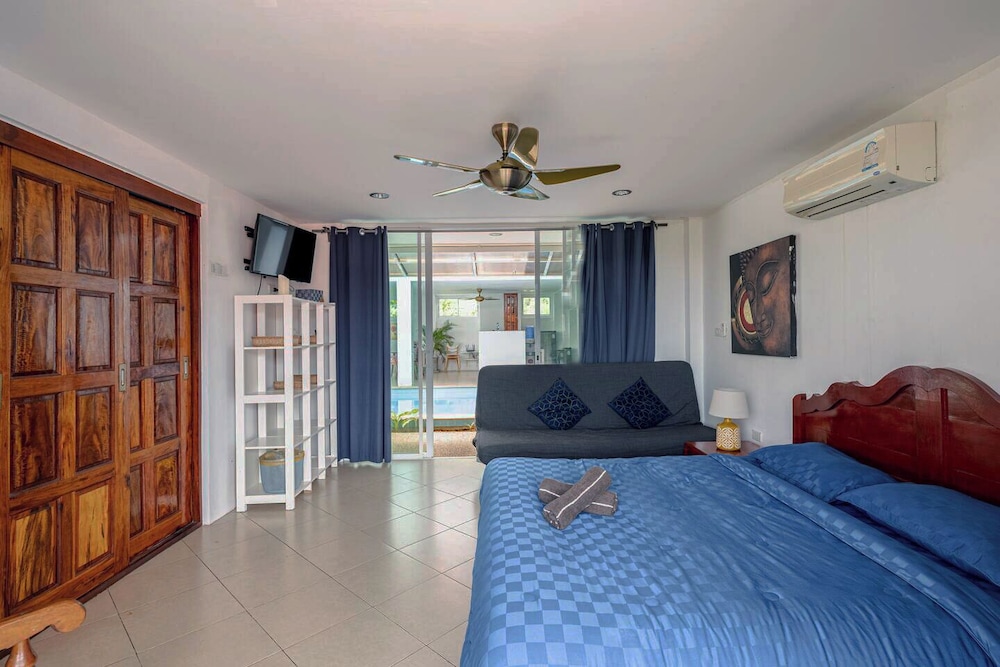 When you stay at this villa in Kamala, you'll be near the beach, within a 15-minute drive of Kamala Beach and Surin Beach. This family-friendly villa is 4.5 mi (7.2 km) from Bang Tao Beach and 7.2 mi (11.6 km) from Patong Beach. Make yourself comfortable in this air-conditioned villa, which features a private pool and an LCD TV. There's a private balcony. A kitchen is outfitted with a full-sized refrigerator/freezer, an oven, and a stovetop. A flat-screen television with cable programming provides entertainment, while complimentary wireless internet access keeps you connected. Distances are displayed to the nearest 0.1 mile and kilometer.