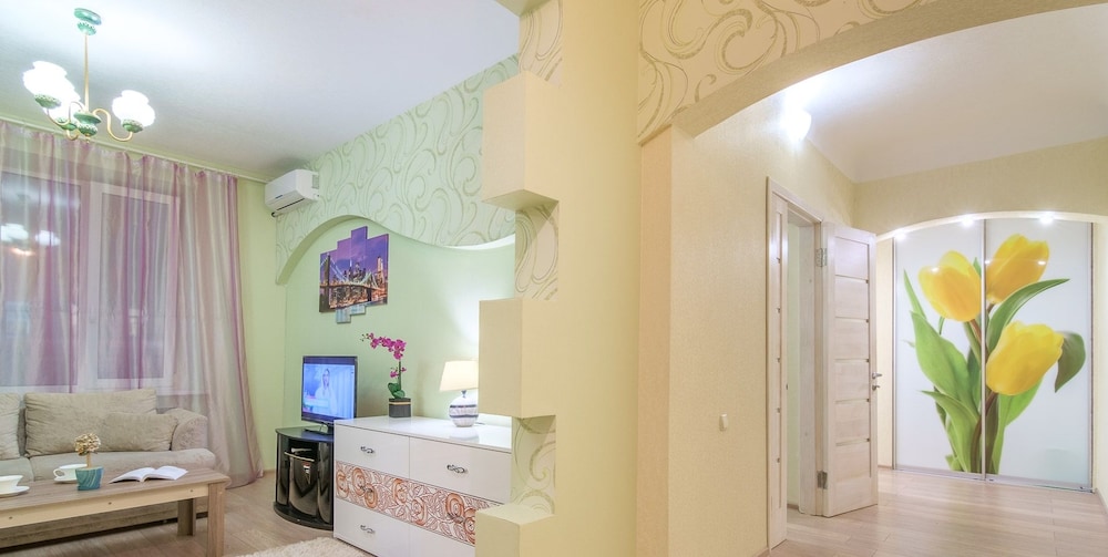 When you stay at this apartment in Kharkiv, you'll be on the waterfront, within a 5-minute walk of Fiddler on the Roof and Uspensky Cathedral. This apartment is 0.4 mi (0.7 km) from Ploshcha Konstytutsiyi and 0.5 mi (0.8 km) from Pokrovsky Monastery. Make yourself comfortable in this air-conditioned apartment, featuring a kitchen with a full-sized refrigerator/freezer and an oven. Complimentary wireless internet access keeps you connected, and a flat-screen television is provided for your entertainment. Conveniences include a desk and a microwave, and housekeeping is provided on request. Distances are displayed to the nearest 0.1 mile and kilometer.