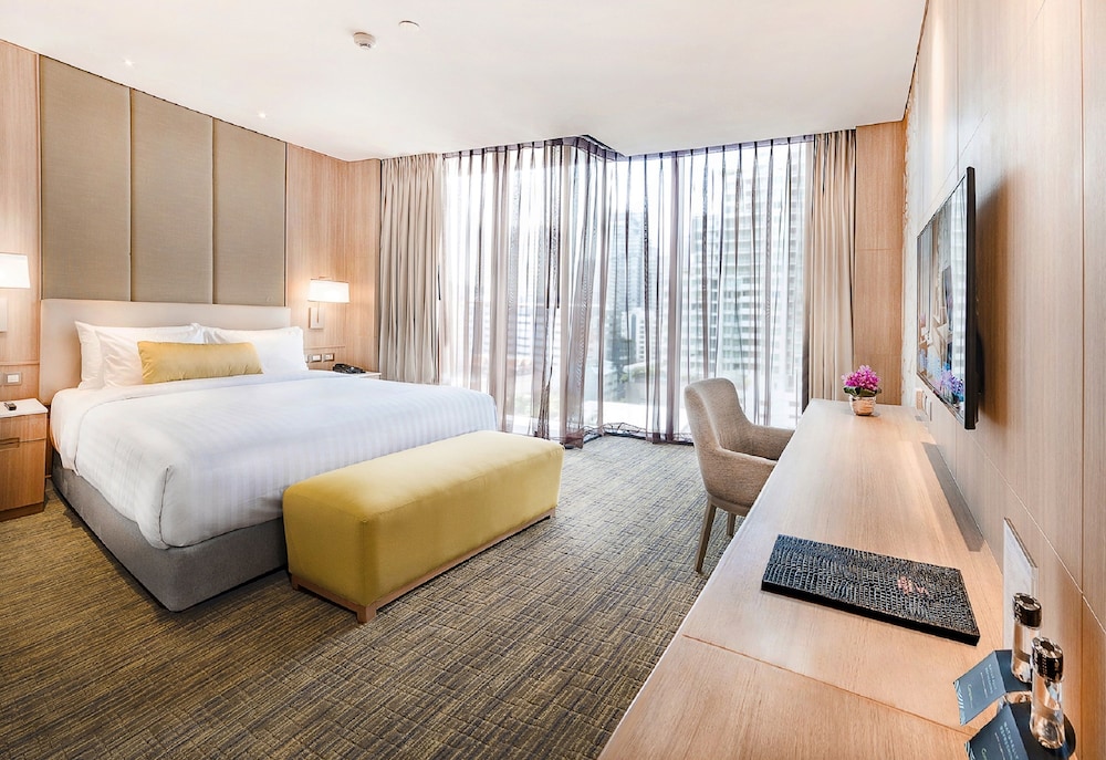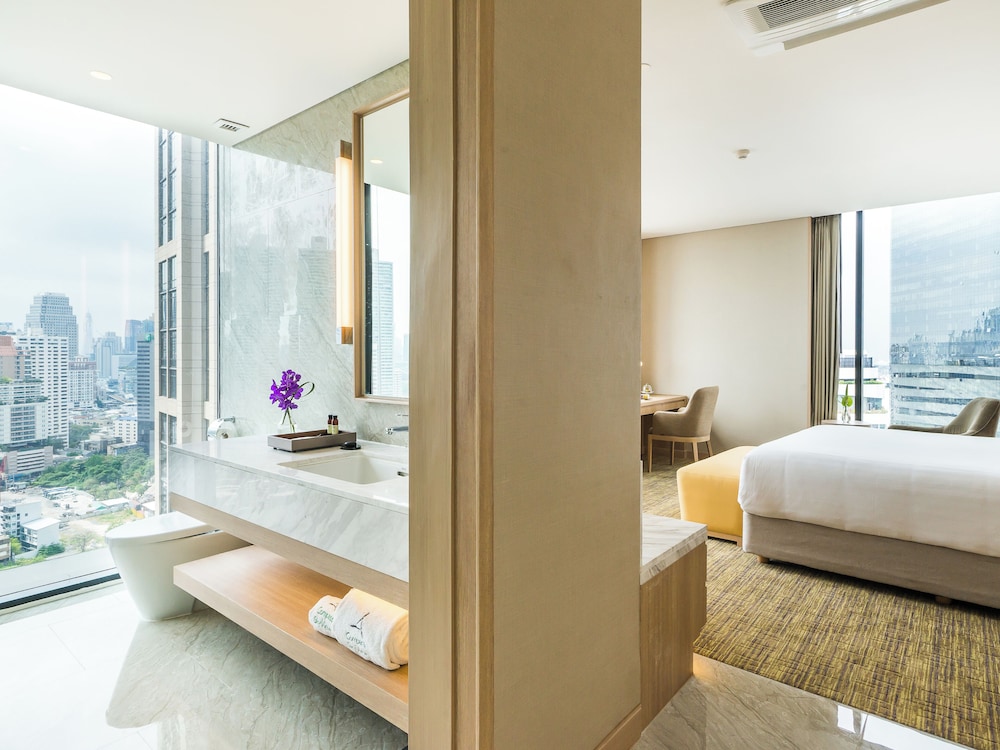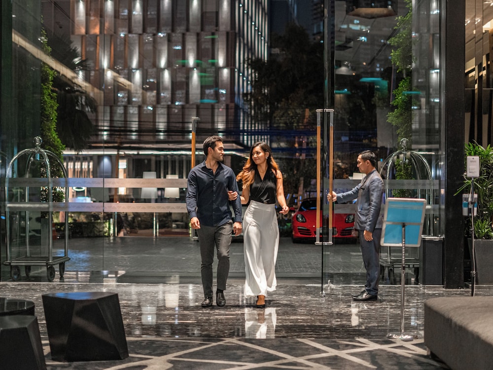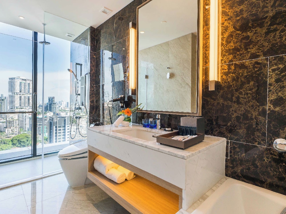 With a stay at SKYVIEW Hotel Bangkok, you'll be centrally located in Bangkok, steps from Emporium and within a 10-minute walk of Benchasiri Park. This luxury hotel is 0.7 mi (1.1 km) from EmQuartier and 1.1 mi (1.8 km) from Samitivej Sukhumvit Hospital. Make yourself at home in one of the 285 air-conditioned rooms featuring minibars and flat-screen televisions. Complimentary wireless internet access keeps you connected, and cable programming is available for your entertainment. Bathrooms feature showers, complimentary toiletries, and hair dryers. Conveniences include phones, as well as safes and desks. Distances are displayed to the nearest 0.1 mile and kilometer.