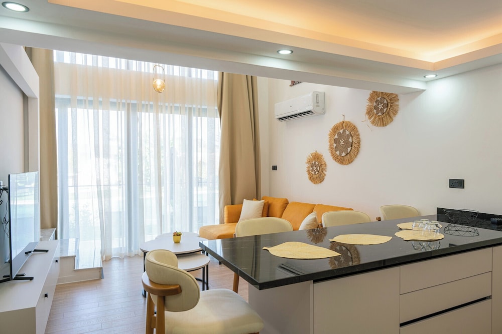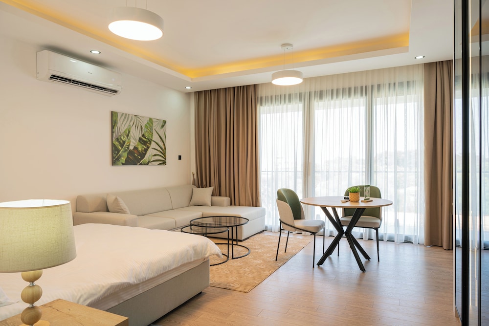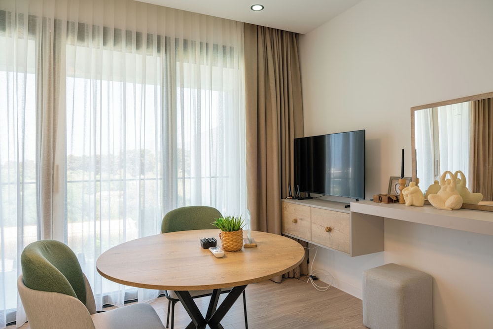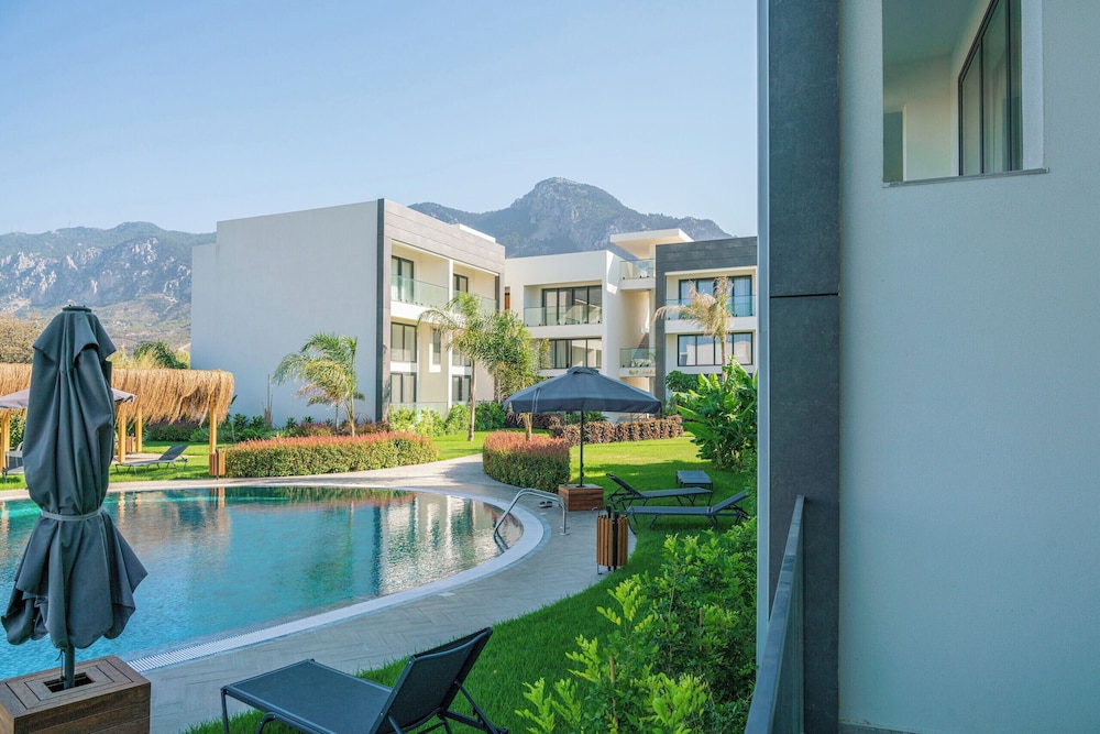 When you stay at Palmera Resort SPA Wellness in Lapithos, you'll be 13 minutes by car from Alsancak National Freedom Park. This spa aparthotel is 8.6 mi (13.9 km) from Merit Park Hotel Casino & Spa and 9 mi (14.4 km) from Kaya Palazzo Resort & Casino Girne. Make yourself at home in one of the 20 air-conditioned rooms featuring kitchenettes with ovens and stovetops. Rooms have private balconies. 40-inch Smart televisions with digital programming provide entertainment, while complimentary wireless internet access keeps you connected. Conveniences include desks and separate sitting areas, and housekeeping is provided on request. Distances are displayed to the nearest 0.1 mile and kilometer.