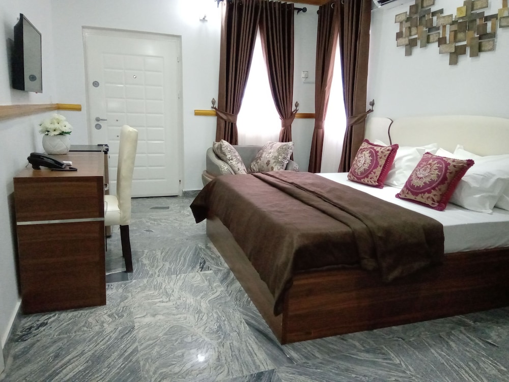 Located in Lekki, Jerico Villa Hotel & Suites is a 4-minute drive from Lagos Business School and 10 minutes from Lufasi Nature Park. This hotel is 13.1 mi (21 km) from Landmark Beach and 4.4 mi (7 km) from Santa Cruz Beach. Stay in one of 22 guestrooms featuring flat-screen televisions. Complimentary wireless internet access keeps you connected, and satellite programming is available for your entertainment. Bathrooms with shower/tub combinations are provided. Conveniences include phones, as well as desks and complimentary newspapers. Distances are displayed to the nearest 0.1 mile and kilometer.
