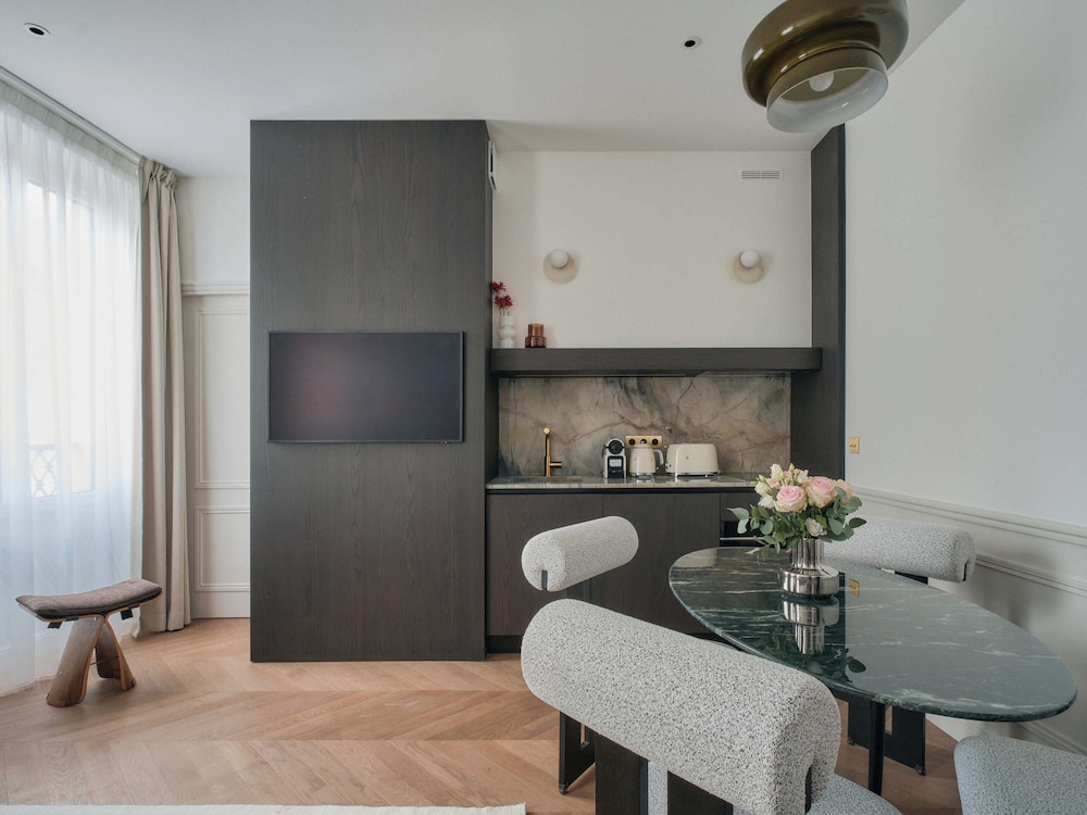 With a stay at Nestay Les Halles, you'll be centrally located in Paris, just a 2-minute walk from Rue de Rivoli and 13 minutes by foot from Notre-Dame. This aparthotel is 0.8 mi (1.2 km) from Louvre Museum and 0.4 mi (0.7 km) from Hôtel de Ville. Make yourself at home in one of the 16 individually decorated guestrooms, featuring kitchenettes with refrigerators and ovens. Your pillowtop bed comes with premium bedding. 43-inch Smart televisions with satellite programming provide entertainment, while complimentary wireless internet access keeps you connected. Conveniences include microwaves and electric kettles. Distances are displayed to the nearest 0.1 mile and kilometer.