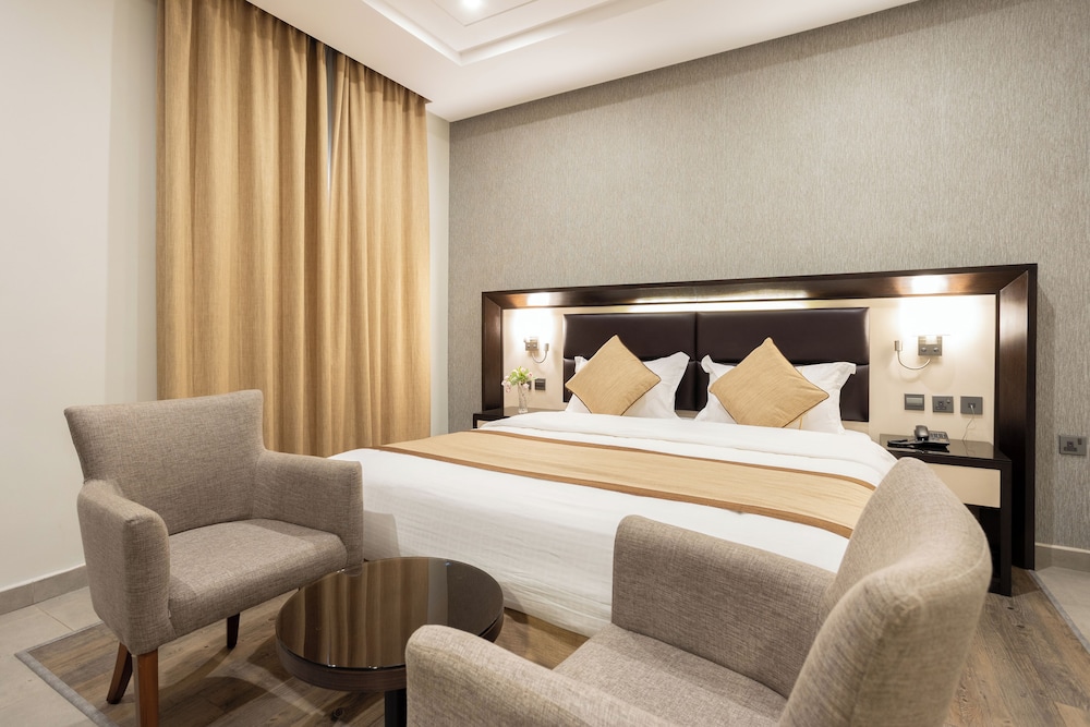With a stay at Hotel SDU Boutique Al Madinah in Madinah (Bani Harithah), you'll be within a 10-minute drive of Prophet's Mosque and Uhud Battle Field. This hotel is 1.7 mi (2.8 km) from Jabal Ahad Garden Park and 1.9 mi (3 km) from Graves of Hamza. Make yourself at home in one of the 33 guestrooms. Complimentary wireless internet access keeps you connected, and satellite programming is available for your entertainment. Bathrooms have bathrobes and slippers. Conveniences include phones, as well as safes and a turndown service. Distances are displayed to the nearest 0.1 mile and kilometer.