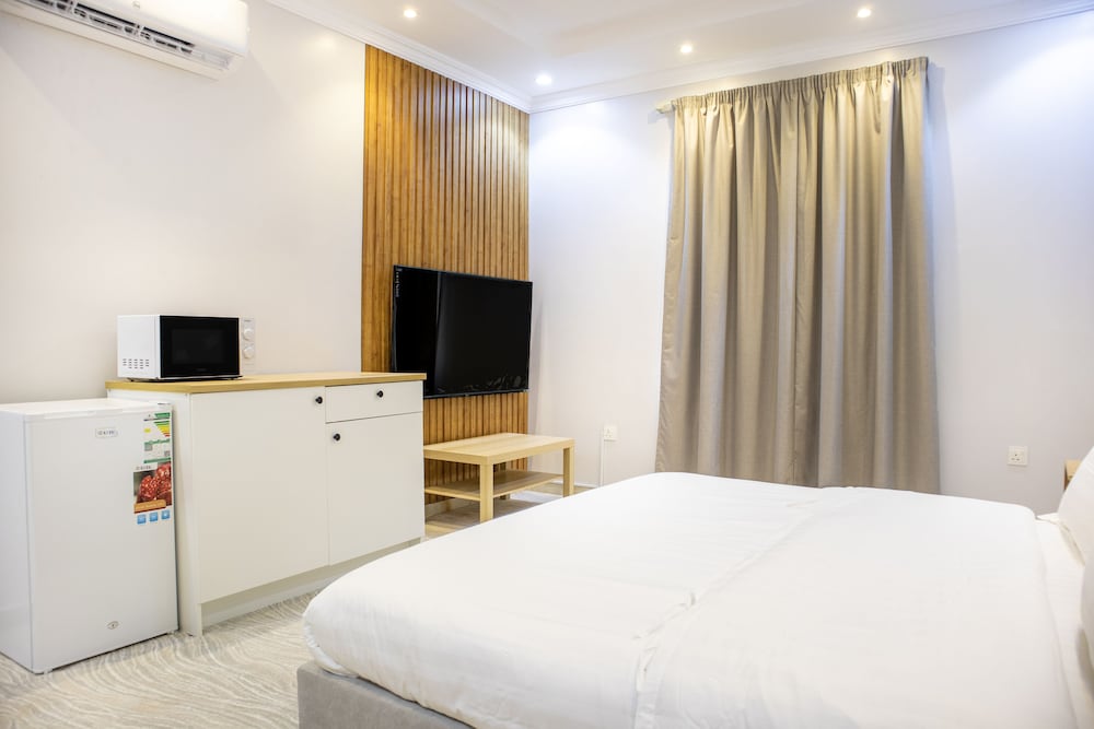 With a stay at Badrani B - Qaswarah Residence , you'll be centrally located in Madinah, within a 15-minute drive of Prophet's Mosque and Jabal Ahad Garden Park. This aparthotel is 5.1 mi (8.2 km) from Al-Rashid Mega Mall and 5.6 mi (9 km) from Dar Al Madinah Museum. Make yourself at home in one of the 5 air-conditioned rooms featuring kitchenettes with full-sized refrigerators/freezers and ovens. LCD televisions with satellite programming provide entertainment, while complimentary wireless internet access keeps you connected. Conveniences include desks and microwaves. Distances are displayed to the nearest 0.1 mile and kilometer.