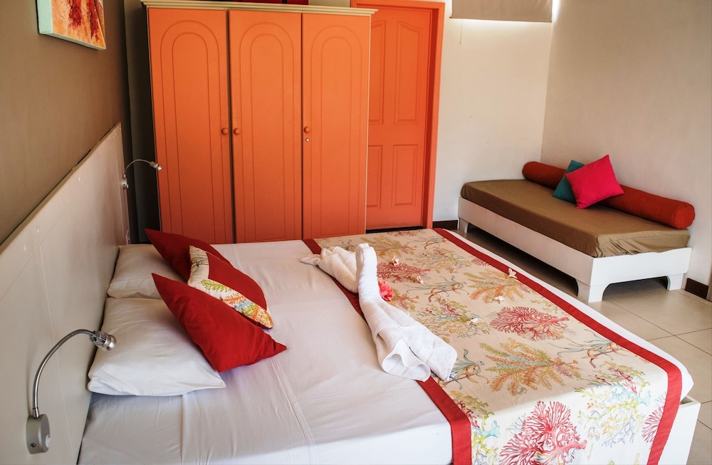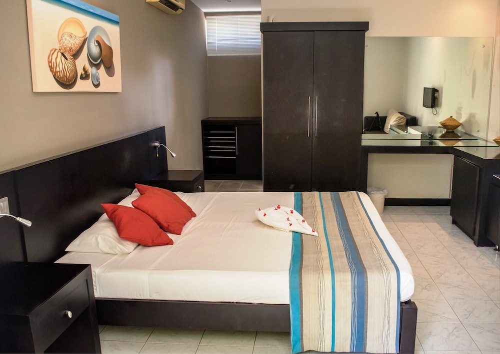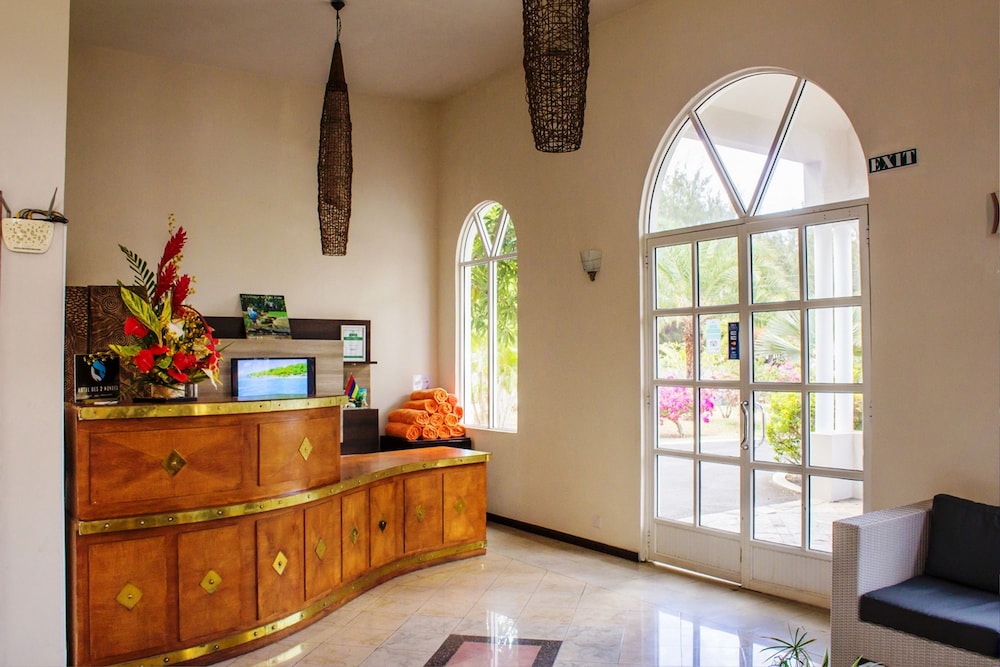 When you stay at Hôtel Des 2 Mondes in Mont Choisy, you'll be in a shopping district, within a 15-minute drive of Trou aux Biches Beach and Turtle Bay. This beach hotel is 0.5 mi (0.8 km) from Mont Choisy Beach and 0.7 mi (1.1 km) from Mont Choisy Le Golf. Make yourself at home in one of the 18 guestrooms featuring minibars and LCD televisions. Rooms have private balconies or patios. Complimentary wireless internet access keeps you connected, and digital programming is available for your entertainment. Private bathrooms with showers feature rainfall showerheads and complimentary toiletries. Distances are displayed to the nearest 0.1 mile and kilometer.