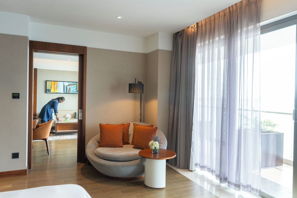 Located in Kanayannur (Mulavukad), Grand Hyatt Kochi Bolgatty is within a 5-minute drive of Bolgatty Palace and Marine Drive. This family-friendly hotel is 3.5 mi (5.6 km) from Chinese Fishing Nets and 3.9 mi (6.3 km) from Fort Kochi Beach. Make yourself at home in one of the 264 air-conditioned rooms featuring minibars and LED televisions. 55-inch Smart televisions with digital programming provide entertainment, while complimentary wireless internet access keeps you connected. Bathrooms have designer toiletries and hair dryers. Conveniences include phones, as well as safes and desks. Distances are displayed to the nearest 0.1 mile and kilometer.