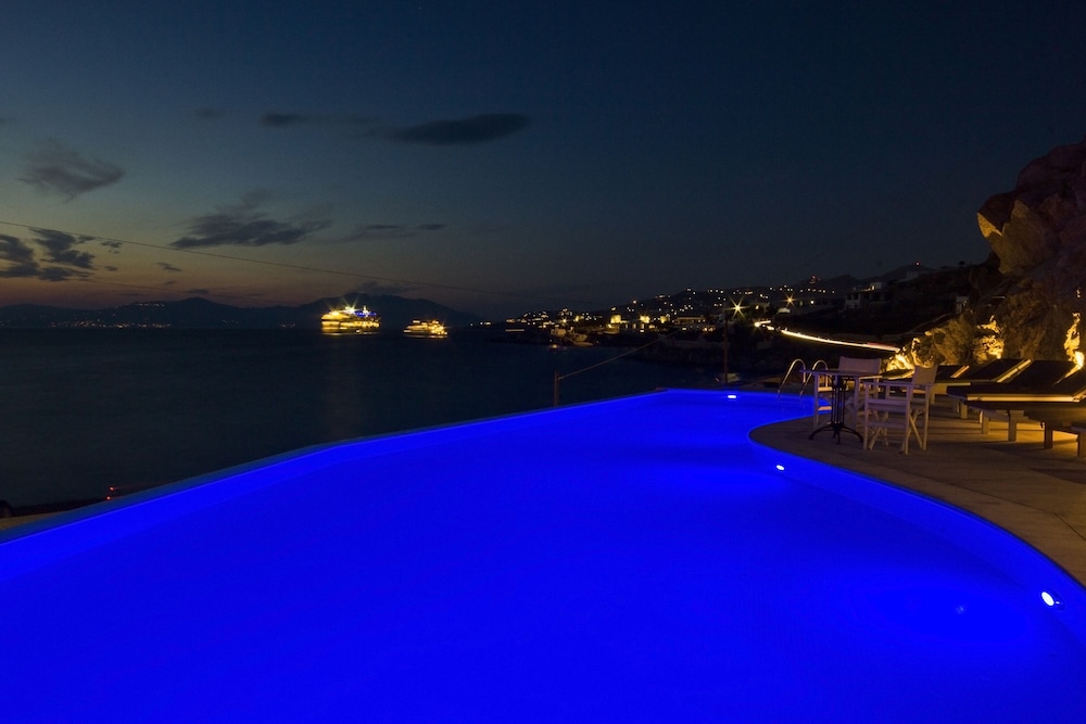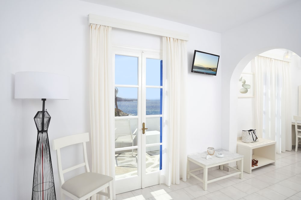 When you stay at Mykonos Beach Hotel in Mykonos, you'll be on the beach, within a 5-minute drive of Mykonos Old Port and Windmills of Mykonos. This beach hotel is 4.1 mi (6.5 km) from Mykonos New Port and 3.4 mi (5.5 km) from Paradise Beach. Make yourself at home in one of the 43 air-conditioned rooms featuring refrigerators. Rooms have private balconies. Complimentary wireless internet access keeps you connected, and satellite programming is available for your entertainment. Bathrooms have bathtubs or showers and hair dryers. Distances are displayed to the nearest 0.1 mile and kilometer.