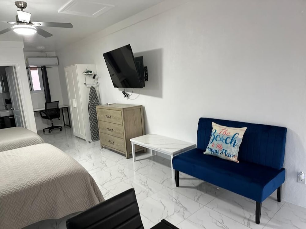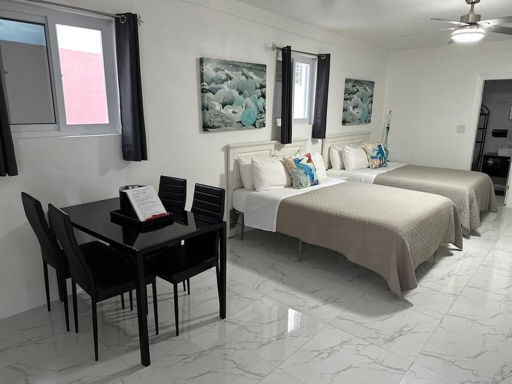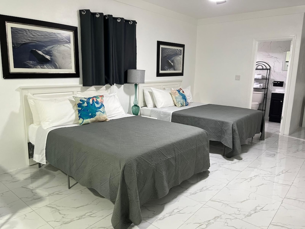 When you stay at The Sunset Stay BnB in Nassau, you'll be on the beach, within a 15-minute drive of Cable Beach and Junkanoo Beach. This beach aparthotel is 0.8 mi (1.2 km) from Caves Beach and 1.6 mi (2.6 km) from Lake Nancy. Make yourself at home in one of the 8 individually decorated guestrooms, featuring kitchens with full-sized refrigerators/freezers and stovetops. Your memory foam bed comes with premium bedding. 43-inch Smart televisions with digital programming provide entertainment, while complimentary wireless internet access keeps you connected. Conveniences include desks and separate sitting areas, and housekeeping is provided on request. Distances are displayed to the nearest 0.1 mile and kilometer.