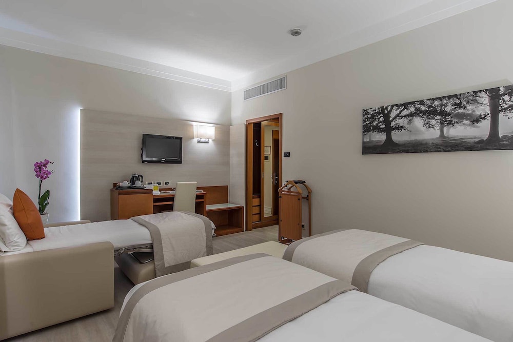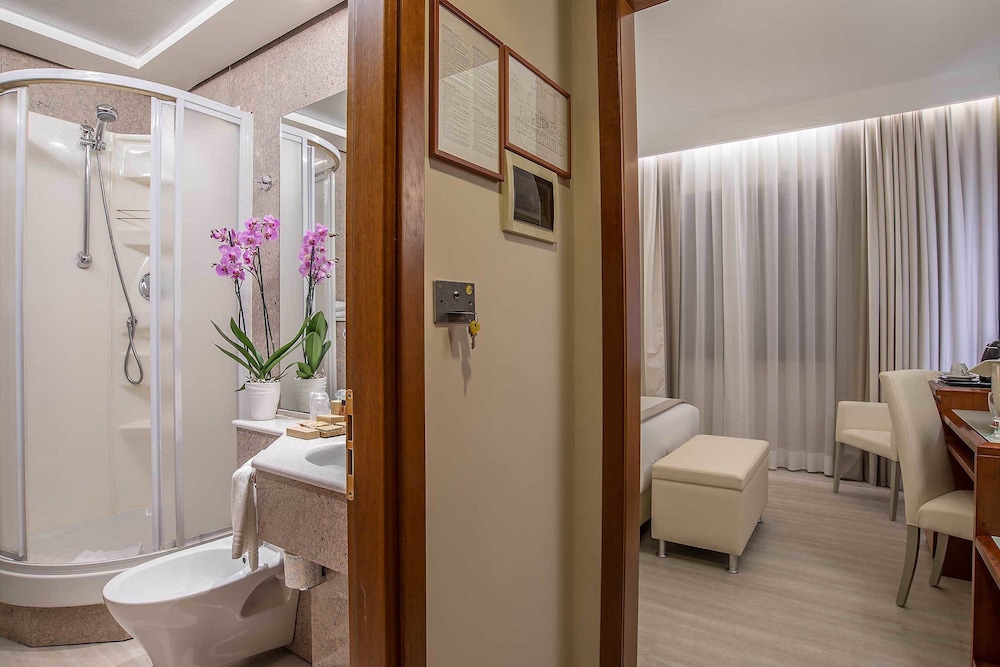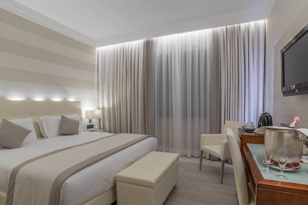 When you stay at Hotel La Giocca in Rome, you'll be connected to a shopping center, within a 15-minute drive of Villa Borghese and Stadio Olimpico. This hotel is 7 mi (11.3 km) from Spanish Steps and 7 mi (11.3 km) from Piazza di Spagna. Make yourself at home in one of the 88 guestrooms featuring minibars and LCD televisions. Complimentary wired and wireless internet access keeps you connected, and satellite programming provides entertainment. Private bathrooms with showers feature designer toiletries and bidets. Conveniences include phones, as well as safes and desks. Distances are displayed to the nearest 0.1 mile and kilometer.