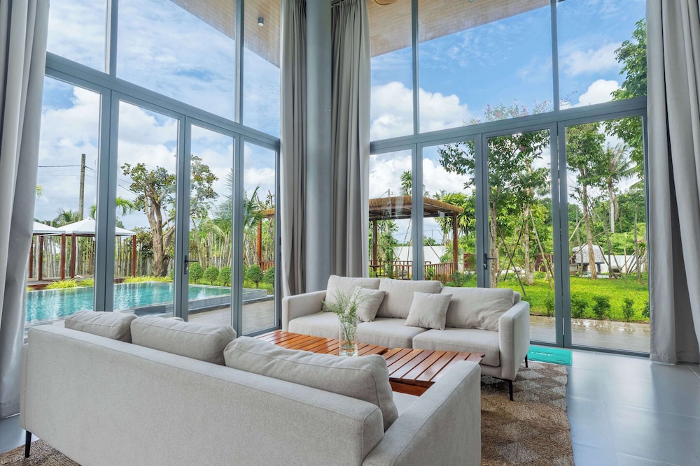 With a stay at Peppercorn Villas in Phu Quoc, you'll be within a 10-minute drive of Ong Lang Beach and Phu Quoc Night Market. This villa is 7.2 mi (11.6 km) from Shophouse Grand World and 7.9 mi (12.7 km) from VinWonders Phu Quoc. Make yourself at home in one of the 2 air-conditioned rooms featuring fireplaces and private pools. Rooms have private balconies. Kitchenettes are outfitted with full-sized refrigerators/freezers and microwaves. 65-inch LCD televisions with cable programming provide entertainment, while complimentary wireless internet access keeps you connected. Distances are displayed to the nearest 0.1 mile and kilometer.