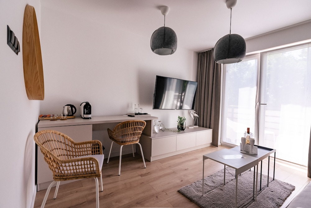When you stay at M2 Resort Wellness & Spa in Wladyslawowo, you'll be near the beach and 6 minutes by car from Northern Star Monument. This family-friendly hotel is 4.1 mi (6.7 km) from Fox Gorge Jastrzębia Góra and 4.9 mi (7.9 km) from Rozewie Lighthouse. Stay in one of 20 guestrooms featuring Smart televisions. Rooms have private balconies. Complimentary wireless internet access keeps you connected, and satellite programming is available for your entertainment. Private bathrooms with showers feature hair dryers and bathrobes. Distances are displayed to the nearest 0.1 mile and kilometer.