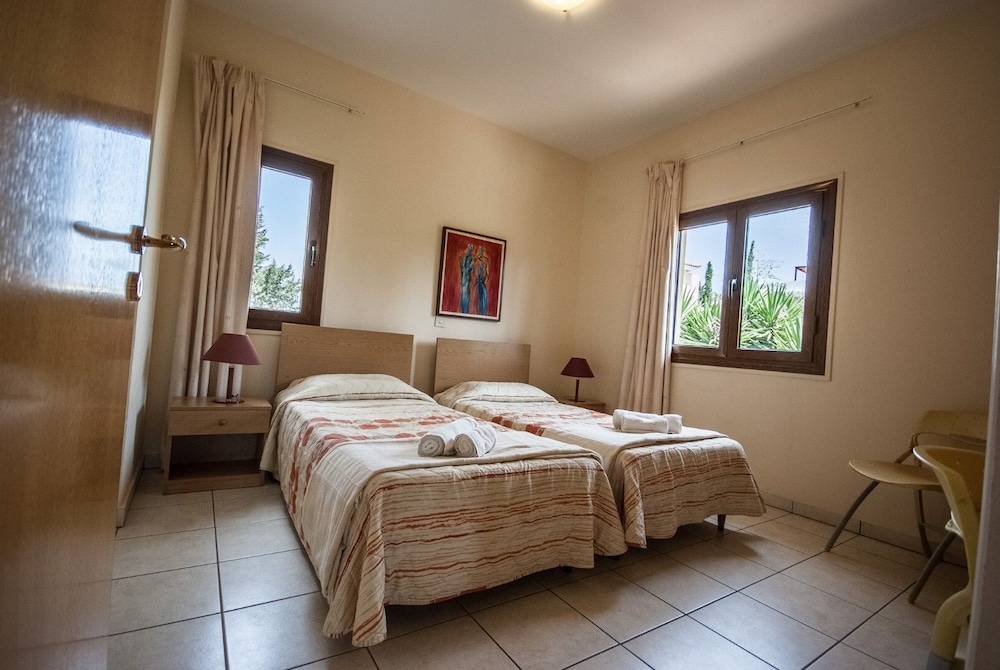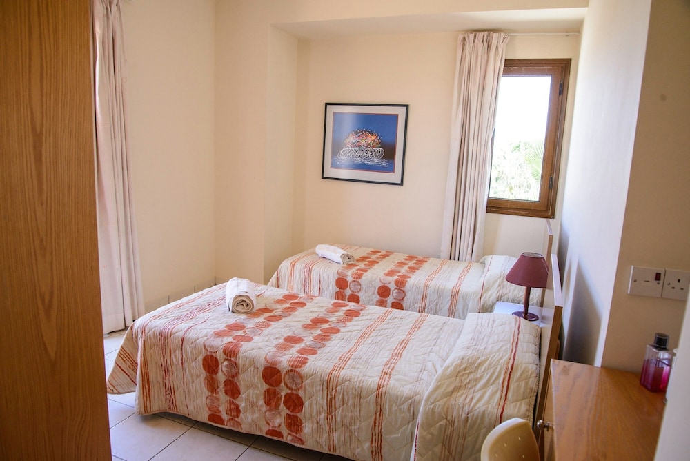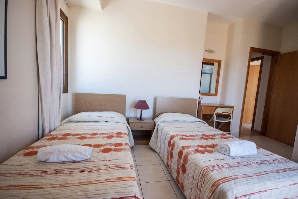 With a stay at Coral Sun Villas in Pegeia (Peyia Town), you'll be within a 10-minute drive of Coral Bay Beach and Coral Bay Karting Center. This villa is 10 mi (16.2 km) from Paphos Harbour and 2.1 mi (3.4 km) from Pafos Zoo. Treat yourself to a stay in one of the 4 guestrooms, featuring private pools and flat-screen televisions. Rooms have private balconies. Kitchens are outfitted with full-sized refrigerators/freezers, ovens, and stovetops. Complimentary wireless internet access keeps you connected, and DVD players are provided for your entertainment. Distances are displayed to the nearest 0.1 mile and kilometer.
