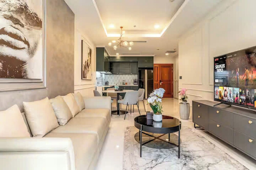 With a stay at Sai Gon Airport Golden Mansion Luxstay, you'll be centrally located in Ho Chi Minh City, within a 10-minute drive of Ben Thanh Market and Dong Khoi Street. This golf aparthotel is 4.5 mi (7.2 km) from Bui Vien Walking Street and 3.8 mi (6 km) from Ho Chi Minh City Opera House. Treat yourself to a stay in one of the 30 individually decorated guestrooms, featuring fireplaces and heated floors. Your Select Comfort bed comes with down comforters and Egyptian cotton sheets. Rooms have private furnished balconies or patios. Kitchens are outfitted with full-sized refrigerators/freezers, ovens, and stovetops. 65-inch Smart televisions with cable programming provide entertainment, while complimentary wireless internet access keeps you connected. Distances are displayed to the nearest 0.1 mile and kilometer.