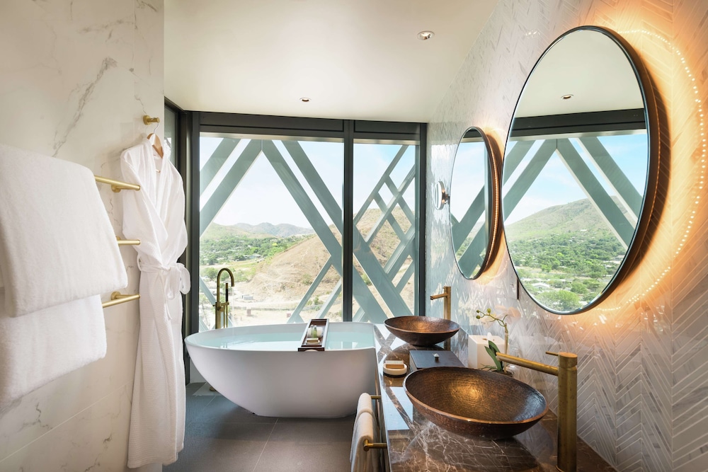 Located in Port Moresby, Hilton Port Moresby Hotel & Residences is connected to the convention center, within a 5-minute drive of Papua New Guinea National Museum and Art Gallery and Royal Papua Yacht Club. This luxury hotel is 3 mi (4.8 km) from Royal Port Moresby Golf Club and 3.5 mi (5.6 km) from University of Papua New Guinea. Make yourself at home in one of the 212 guestrooms featuring refrigerators and Smart televisions. Your pillowtop bed comes with down comforters. Wireless internet access (surcharge) keeps you connected, and cable programming is available for your entertainment. Private bathrooms have designer toiletries and hair dryers. Distances are displayed to the nearest 0.1 mile and kilometer.